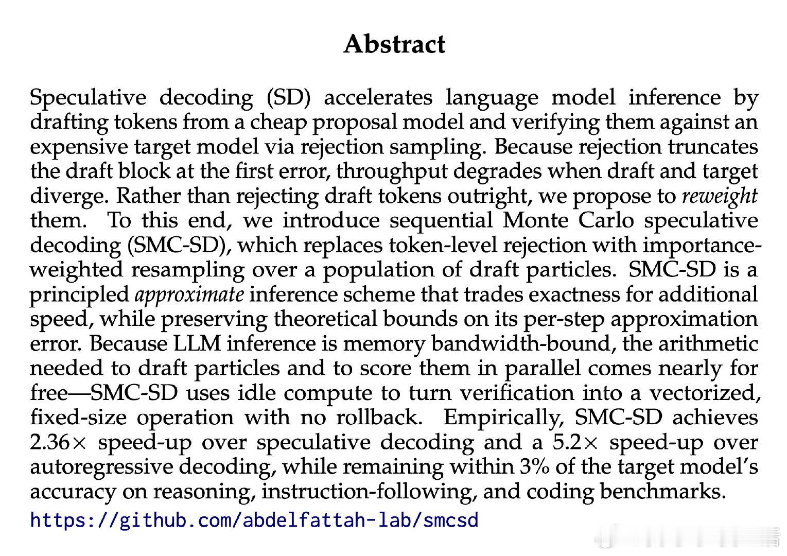 [LG]《Faster LLM Inference via Sequential Monte Carlo》Y Emara, M B d Costa, C Chang, C Freer… [Cornell University & MIT] (2026)