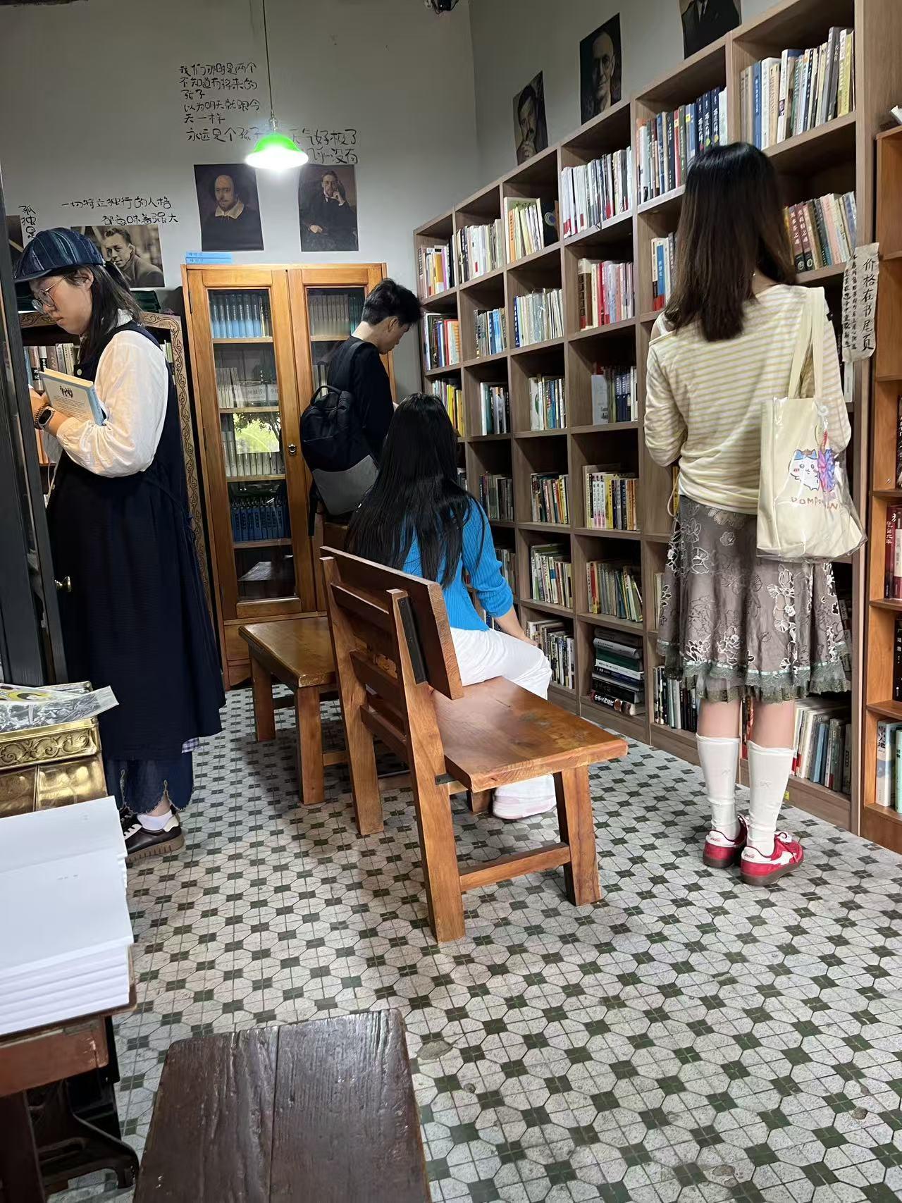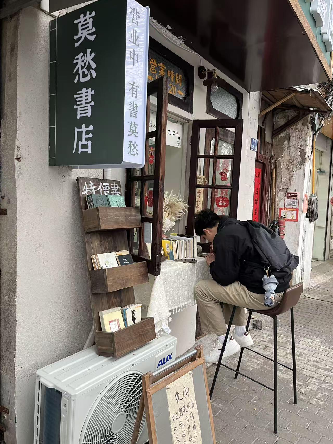 《蓝宇:走着走着就爱上了南京这座城—-于是水西门广场上便有了一家“莫愁书店”》 本文主人公的名字叫蓝宇,是一位来 自广西玉林的85后。他曾经是一家大媒体的文字记者,写作功底了得;读书、写诗、旅行是他生活里最自在的模样。 蓝宇早已走过N座城市,却在遇见南京的那一刻,被这座六朝古都深深打动了。他对笔者是这样描述南京的:“她既有深厚的文化底蕴与四季流转的优美风景,更有让人安心的市井烟火与人情温度。” 骨子里偏爱自由与诗意的他,就这样 悄悄停下了脚步,决定在南京这座城市,为自己、也为同路人,安下一个温暖的文学角落-于是,便有了这间水西门广场上的莫愁书店。 这家二手书店仅有三十来个平方,空间不大,却被蓝宇按照自己的心意精心布置,整体完全仿照家庭书房的格局与 版式打造。读者推门走进店内,没有传统书店的商业感,反倒像踏入了一位极具文学素养之人的私人书房,满室温馨,满架书香,处处透着主人对书籍与文学的赤诚执爱。 莫愁书店主打文学类二手书籍,书籍排布也格外用心:进门首先是国外经典名著区,接着依次陈列国内外现当代经典小说、中外散文,还有各类当代作家的优秀作品。而书店最特别的一点,是专门收录了诸多记录、讲述南京风土人情的图书,这也给前来南京旅游的外地游客,提供了一个探寻金陵历史、读懂城市底蕴的绝佳角落。 凭借网络自媒体的传播,这家小小的 二手书店,很快就吸引了一批固定读者。客群里约八成是在校大学生、研究生,南京大学、南京师范大学的学子们常常慕名而来;还有不少外地年轻游客,在网上看到这家小店后便心生向 往,来南京旅游时,都会特意抽空前来打卡逛店。 面对互联网和大型二手书网络平台的 冲击,蓝宇也为小店定下了十分亲民的定价:店内的新书一律五折出售,精心收来的各类文艺二手作品,大多只要十元、十五元一本,让每一位爱书人都能轻松淘到心仪好书。书店从上午十点营业至晚上八点,超长的营业时间,也让不少上班族,愿意走进这份浓郁的文学氛围里,静心挑选喜爱的书籍。 每当夜幕降临,莫愁书店的灯箱便点 亮了温暖的光,在熙攘的市井街头,静静守候着每一位过客。这一方小小的天地,不仅是摆满旧书的书房,更是所有文学爱好者,在喧嚣城市里可以停靠栖息心灵的港湾。