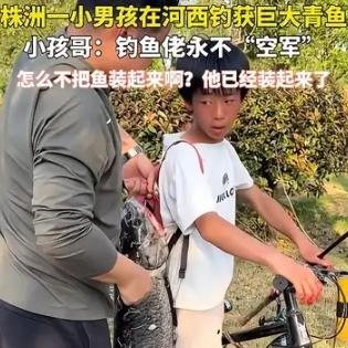 笑死了!湖南株洲,一位小孩哥去河边钓鱼时钓到一条大青鱼,不过如何回家却成了问题,男孩抱着鱼也不松手,最后在路人的帮忙下直接挂在书包上。钓鱼佬:看的心里有点不舒服! 不少网友看完直接笑喷:这哪是钓鱼,这是钓了个“人生战利品”啊! 小男孩一看就是平时没少蹲河边,装备简单,眼神却透着一股老钓手的淡定。可谁也没想到,今天运气直接爆棚,一竿下去,拉上来一条体型远超他想象的大青鱼。 鱼太大,抱在怀里沉甸甸的,走两步就累得够呛,放地上又怕跑了,小男孩全程死死抱住,一脸“谁也别想抢我的鱼”的倔强,又好笑又心疼。 路人看他实在没办法,热心出手,直接把鱼穿好,挂在了他的小书包上。 于是,名场面出现了:小男孩背着书包,身后垂着一条大青鱼,晃晃悠悠走在回家路上,气场拉满,整条街最靓的仔就是他。 这一幕,戳中了无数钓鱼人的心声。 有老钓鱼人无奈调侃:“我蹲守一天,饵料换了三四种,浮漂动都不动,人家小孩随手一甩,直接爆护。” 还有人说:“看着他背着鱼回家,我心里是真不舒服,嫉妒得牙痒痒,但又觉得太可爱了。” 其实大家不舒服的,从来不是小孩钓到鱼,而是那种不费吹灰之力就撞上大运的运气,是我们小时候也有过的、简单又纯粹的快乐。 没有复杂的技巧,没有攀比,没有压力,钓到一条大鱼,就能开心一整天。 长大后,我们总想钓大鱼、钓更多鱼,却慢慢忘了,钓鱼最开心的,本来就是那一刻突如其来的惊喜和满足。青鱼钓