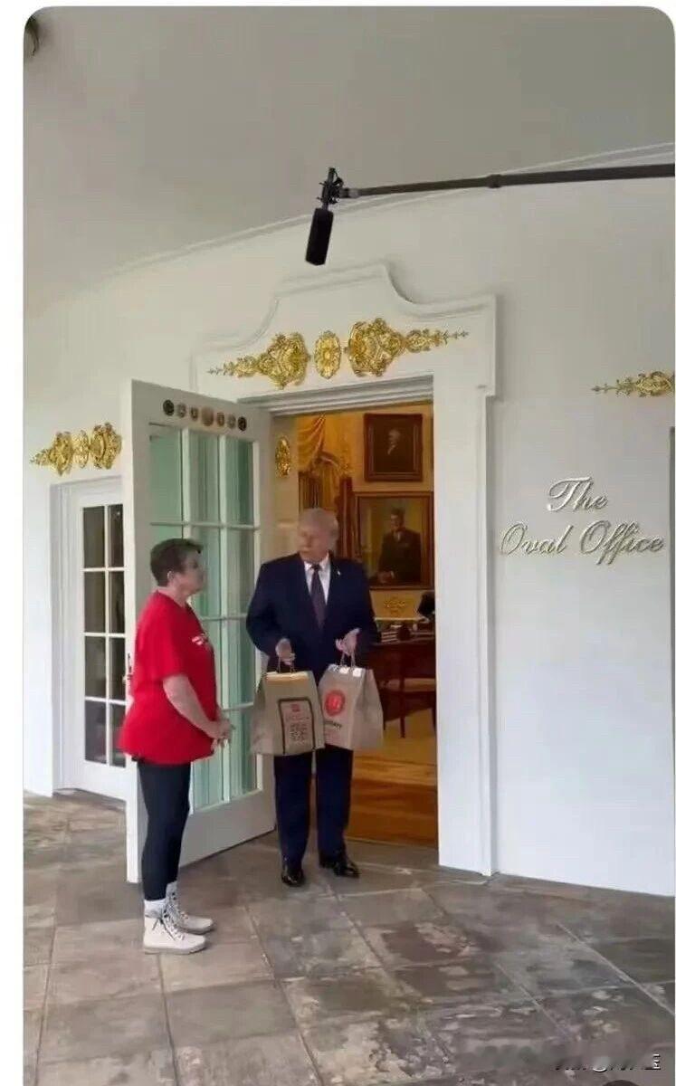 2026年4月中旬的某个早晨,一个外卖送餐大姐,将两份麦当劳家庭套餐送到了白宫椭圆形办公室。特朗普出门来取餐,还和她聊了一分钟,并付了小费。就算是作秀,也可以笑傲江湖了…… 特朗普还问送餐员是否投票给他,得到对方尴尬回答。特朗普还在记者提醒后给了这名送餐员100美元小费。这名送餐员是10个孩子的祖母,她于2022年加入这家外送平台。 外卖大姐将麦当劳送至白宫椭圆形办公室,特朗普亲自取餐、交谈并付小费,这场看似亲民的场景,本质是精心设计的政治作秀。 白宫本是权力核心,用快餐外卖制造反差,意在塑造贴近底层、接地气的形象,为政策造势拉票。即便刻意表演,也精准拿捏美式政治传播逻辑,用平民化场景消解精英距离感,话题性拉满。 但作秀终究是表演,亲民姿态难掩政治目的。短暂互动与小费,换不来民生实质改善,更掩盖不了政策分歧。这种套路虽显直白,却在舆论场屡试不爽,堪称美式选举政治的典型缩影。