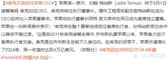 每天摸鱼打卡早上好!今天一起床就看到一个比较突然又有些劲爆的消息,库克不再担任苹果CEO,意料之外情理之中,因为库克退休这件事已经提了很久了,但与此同时什么时候退休又一再拖延和辟谣。