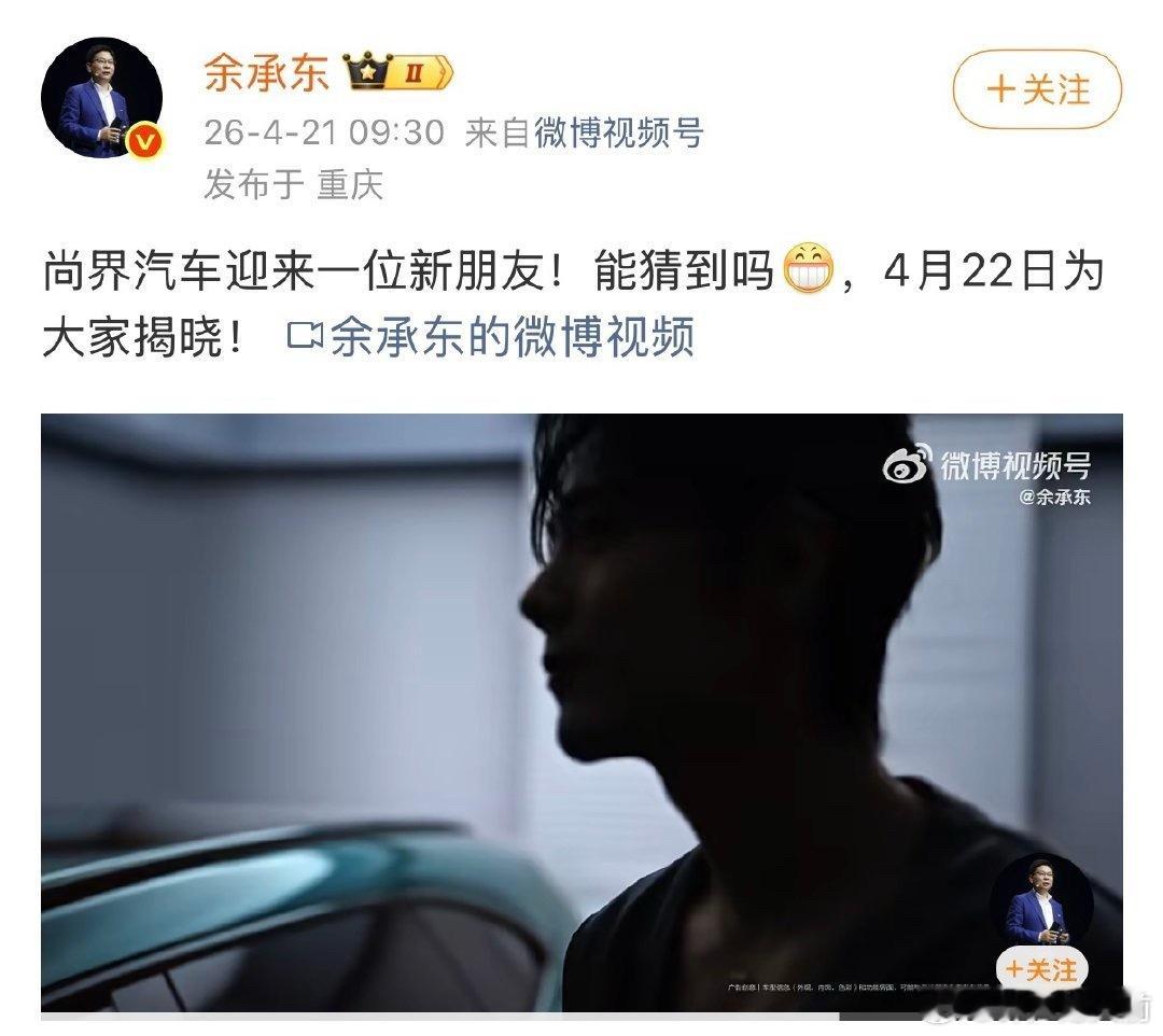 余承东正式发布尚界汽车代言人预热,空降最高title,期待明天!!