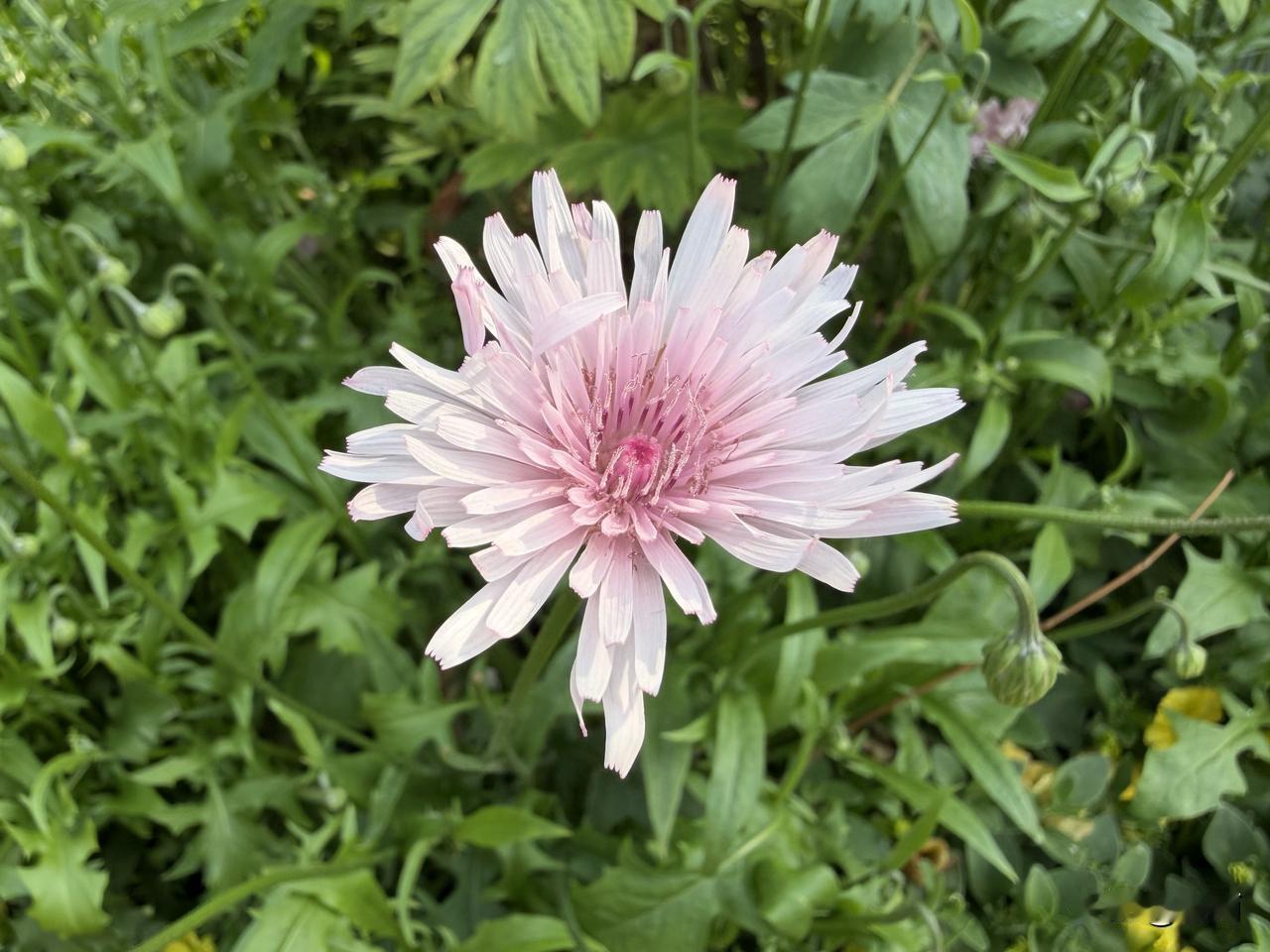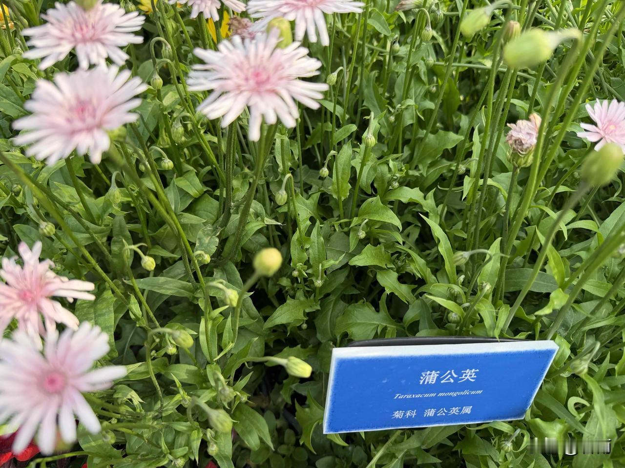 我一直以为蒲公英只有明黄色,第一次见到温柔的粉色蒲公英,瞬间被这份少见的浪漫惊艳到了。在印象里,蒲公英都是金灿灿的小黄花,随风飘散带着童趣,没想到还有这般清雅柔美的粉色品种,属实刷新了认知。 现在,咱们一起先科普一下吧。粉色蒲公英属于菊科蒲公英属,和我们常见的黄花蒲公英是同科同属的“亲戚”,但颜值更加独特。它的花瓣是淡淡的粉白色,中心晕染着浅浅的胭脂粉,不像黄花那样热烈张扬,反倒自带一股温婉柔和的气质,清新又治愈。它的花茎纤细挺拔,搭配翠绿的锯齿叶片,一丛丛开在一起,像散落的粉色星光,仙气十足。 不同于普通蒲公英的随性自在,粉色蒲公英的花语格外温柔:无法停留的爱、温柔的守候、不期而遇的惊喜。它既有蒲公英随风远行的洒脱,又多了一份细腻柔情,寓意着生活里那些不期而遇的美好,也象征着默默守护的心意,低调又有力量。 日常观赏这抹清雅花色,既能养眼悦目、舒缓眼疲劳,又能平复烦躁心绪、静心安神。大家熟知的蒲公英本身就是药食同源的健康植物,粉色蒲公英同样延续了这份自然馈赠,观花养心,知其益处更添一份生活的踏实与安心。 粉色蒲公英十分小众,不似黄花蒲公英那般随处可见,大多种植在植物园、花卉园区,能偶遇一次真的很幸运。它不仅颜值出众,同样会结出毛茸茸的绒球,风一吹便带着温柔的粉色浪漫飘向远方。这种少见又温柔的小花,见过一次就很难忘记,也太适合拍照打卡了。 这一丛粉色蒲公英,就开在北京中山公园里。具体位置在西门右手边,数量不多,实属罕见。