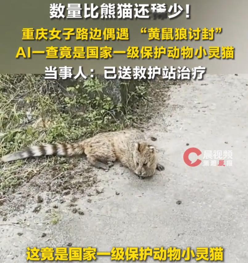 重庆,女子在路边看到有个小动物,第一眼看上去还以为是“黄鼠狼讨封”,这把她吓了一跳,可观察了一会觉得不对劲,走近一查才知道,这竟然是一只小灵猫,比大熊猫还要稀少,女子一边施救一边碎碎念也是逗笑了一众网友 冉女士介绍,当天自己正在路上走路,就看到前面有一只小动物,趴在地上动作有些怪异,开始还以为是黄鼠狼,可把手机镜头拉近又不太像 于是鼓足勇气走上前,发现真就不是黄鼠狼,可她又不认识,于是拍照让AI查了一下,这才知道是国家一级保护动物小灵猫 而这只小灵猫尾巴处都是苍蝇,疑似是受伤了,于是冉女士把小灵猫放到框里,一边碎碎念说“老子要是不救你,你就真滴要死,你乖一点哈,不要咬老子” 如此魔性的重庆方言,让这个事增添了不少喜感,事后小灵猫被救护站带走,经过检查是存在缺钙情况,而且感冒了,目前已经进行了对症治疗 这件事有意思的地方在哪?不在于冉女士运气好撞上了珍稀动物,也不在于她那一口魔性方言逗乐了全网 在于一个普通人面对一个不认识的东西时,那种本能反应 她一开始是怕的。“黄鼠狼讨封”这个说法,城里年轻人可能不太熟,但在很多地方,尤其是老一辈传下来的记忆里,这是个带着敬畏甚至忌讳的事儿。她完全可以绕道走,谁也说不了她什么 但她没走。怕归怕,她还是凑上去看了 这一看,救了一条命 你说她认识小灵猫吗?不认识。她懂野生动物保护法吗?不一定。她就是个普通人,凭着一股“不对劲就得看看”的劲头,加上动手之前先查一下的谨慎,把事办了 这年头,很多人遇到路边不认识的动物,要么远远躲开,要么咋咋呼呼拍个视频发网上就完了。冉女士不一样,她怕,但她没被怕挡住;她不认识,但她会查;她查完了,她真动手救 一级保护动物比大熊猫还稀少,这话不是夸张。小灵猫的种群状况确实不乐观,很多人一辈子都见不到一只活的。冉女士能碰上,是运气;她选择救,是本事