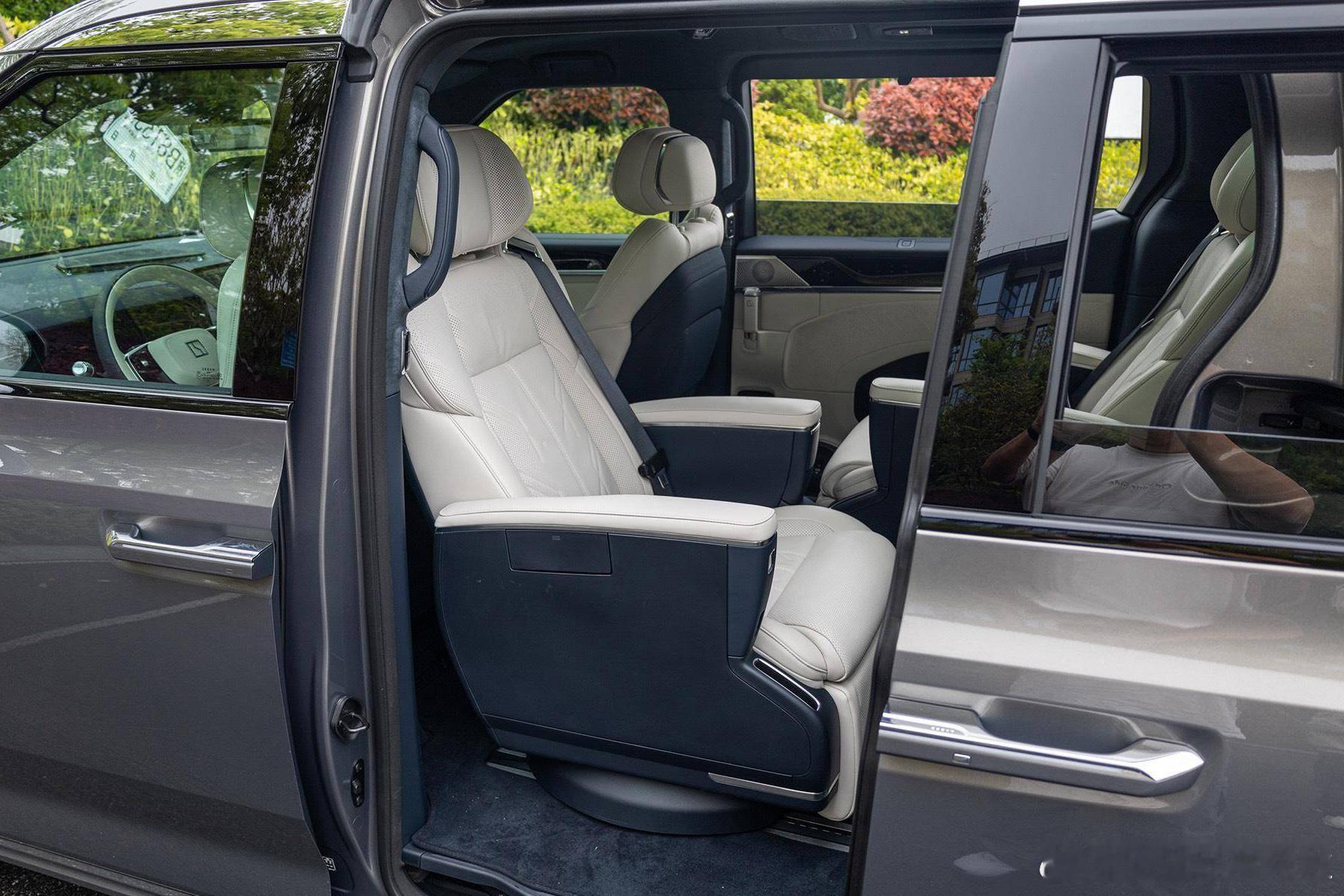 2、座舱升级这一次座椅也能旋转了,七座版二排新增双零重力座椅及双侧旋转座椅,并搭载极氪9X同款Naim音响。