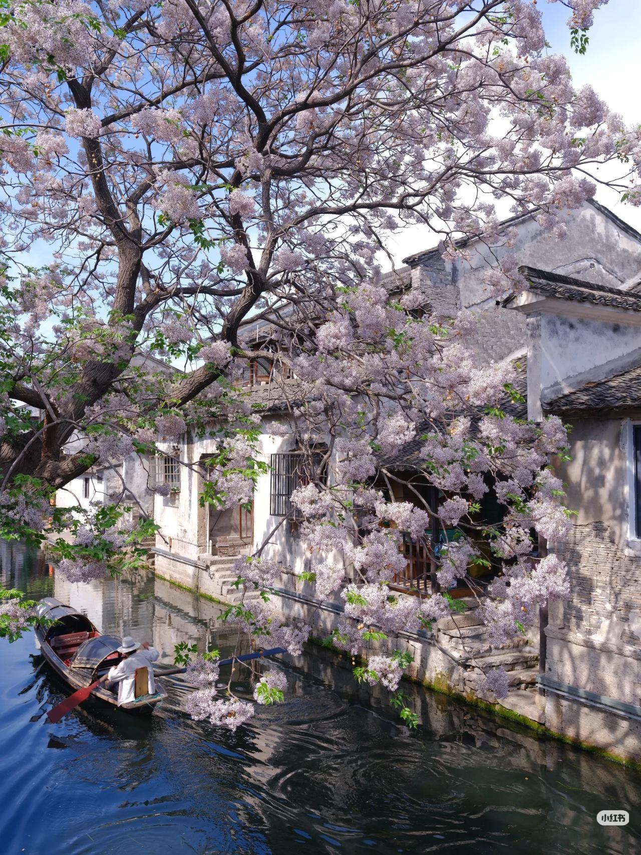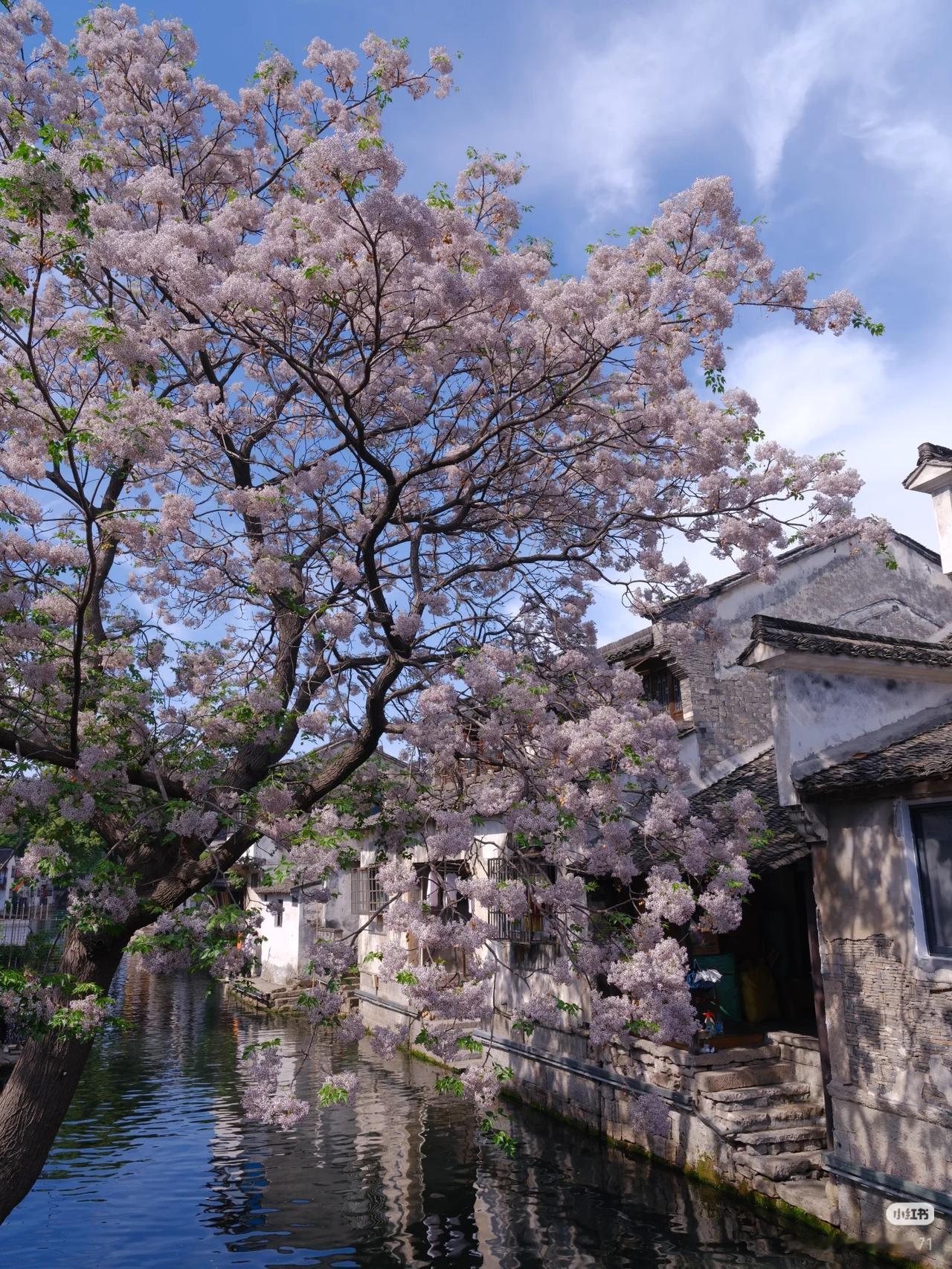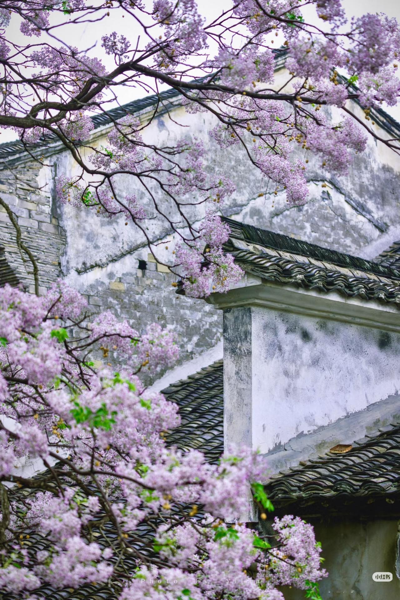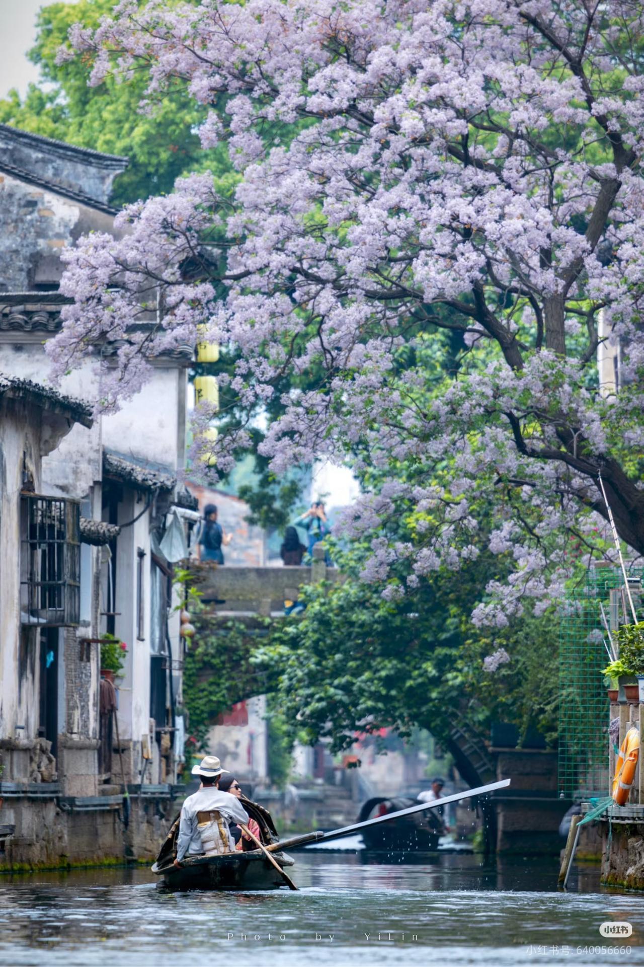 春光有信:苦楝花开,一梦入江南 四月总要来趟绍兴吧 苦楝花开,满树紫雪落江南 淡紫花穗如烟似雾 垂在青石板与流水之上 二十四番花信风,楝花为终 白墙黛瓦、小桥流水、乌篷船 这是江南春天最温柔的谢幕! 四月来绍兴吧!赴一场暮春的花事之约! 🛶 仓桥直街·真正的江南水墨画:直接导航「孔乙己酒家」(仓桥直街店),酒家旁的府桥就是顶流拍摄位!一定要等一艘乌篷船划过水面抓拍,白墙黛瓦+淡紫花穗+摇橹船,妥妥的水墨画跃然纸上。 📷 必出片四大机位: 1. 府桥俯拍:以苦楝花枝做前景,等乌篷船划过水面,记得连拍。 2. 巷口仰拍:以青瓦白墙为背景,聚焦满树繁花,新中式适配度满分。 3. 河岸平视:拍花影映水面,雨天更有烟雨江南的朦胧感。 4. 高处俯瞰:去若耶溪茶室二楼露台,高机位避开人群拍大景。 ⏰ 最佳拍摄时间: 清晨7:00-9:00,人少光线柔和,能拍出清冷高级感;傍晚16:00-18:00,落日金光照在紫花上,氛围感直接封神)。