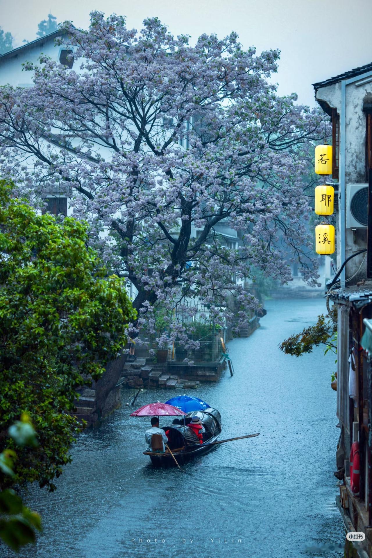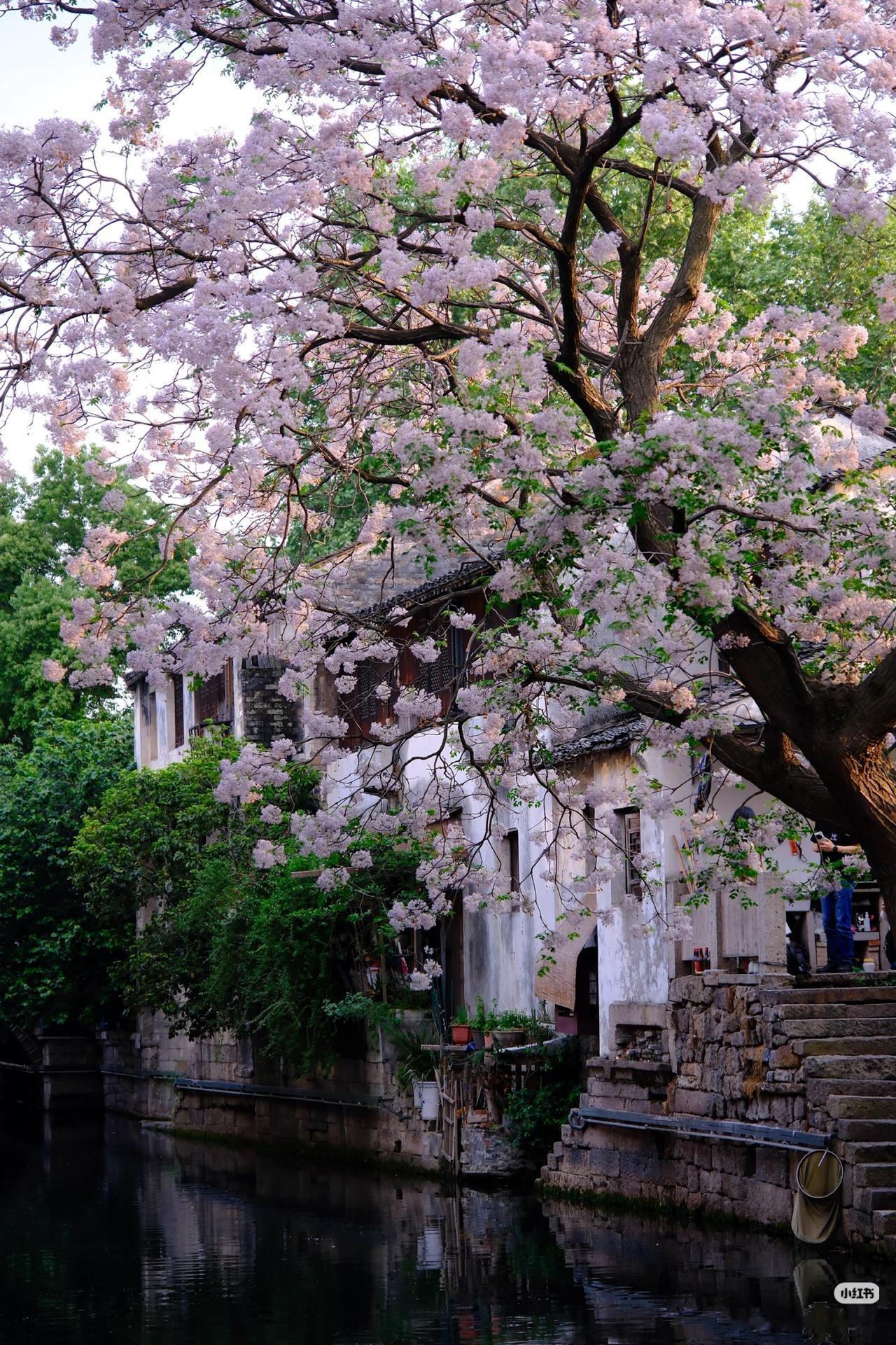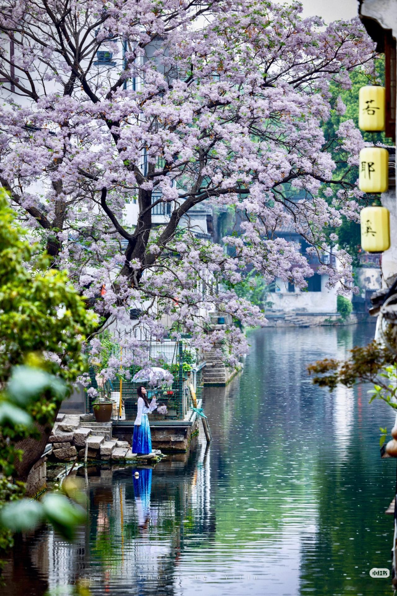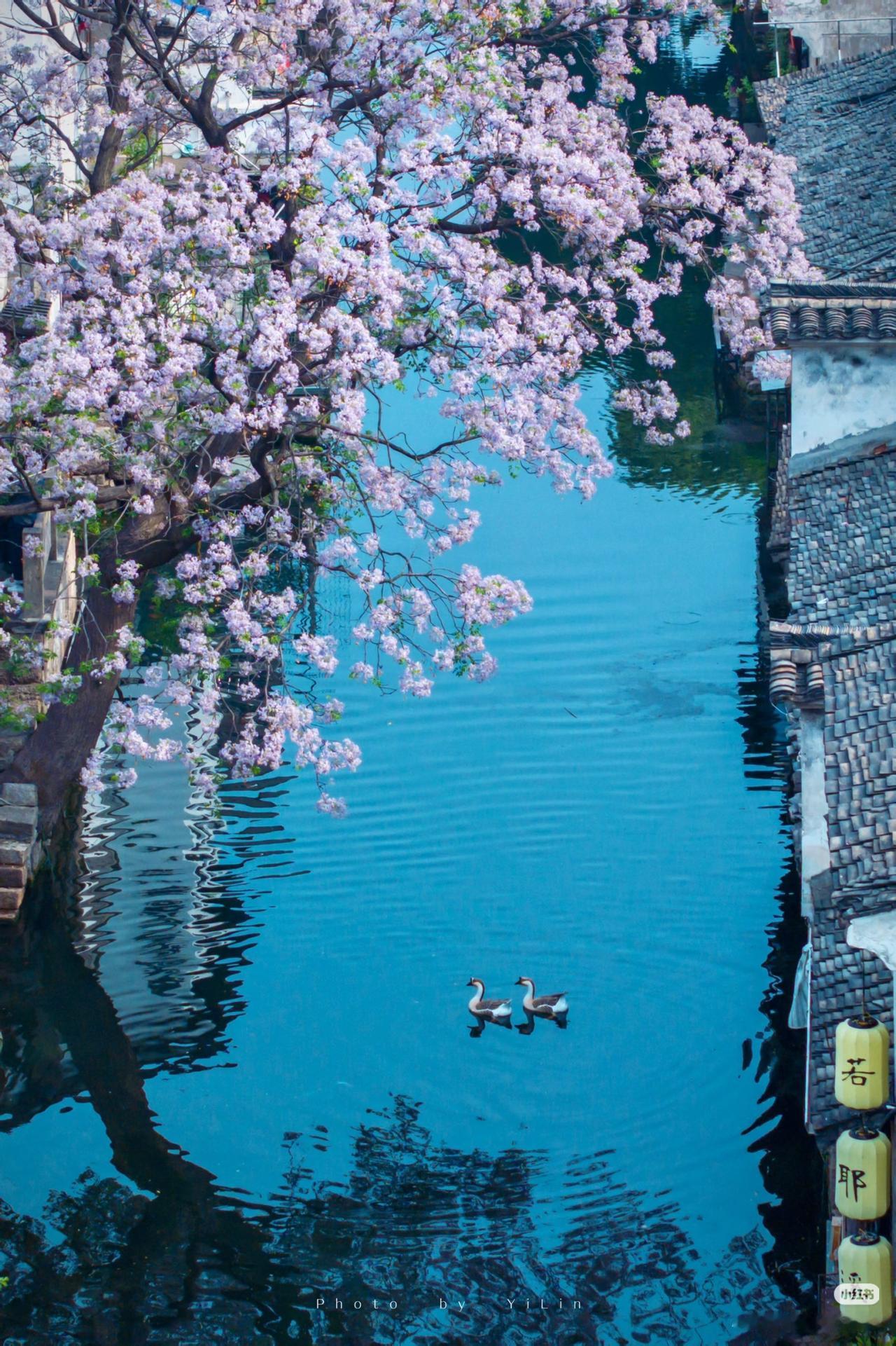 春光有信:苦楝花开,一梦入江南 四月总要来趟绍兴吧 苦楝花开,满树紫雪落江南 淡紫花穗如烟似雾 垂在青石板与流水之上 二十四番花信风,楝花为终 白墙黛瓦、小桥流水、乌篷船 这是江南春天最温柔的谢幕! 四月来绍兴吧!赴一场暮春的花事之约! 🛶 仓桥直街·真正的江南水墨画:直接导航「孔乙己酒家」(仓桥直街店),酒家旁的府桥就是顶流拍摄位!一定要等一艘乌篷船划过水面抓拍,白墙黛瓦+淡紫花穗+摇橹船,妥妥的水墨画跃然纸上。 📷 必出片四大机位: 1. 府桥俯拍:以苦楝花枝做前景,等乌篷船划过水面,记得连拍。 2. 巷口仰拍:以青瓦白墙为背景,聚焦满树繁花,新中式适配度满分。 3. 河岸平视:拍花影映水面,雨天更有烟雨江南的朦胧感。 4. 高处俯瞰:去若耶溪茶室二楼露台,高机位避开人群拍大景。 ⏰ 最佳拍摄时间: 清晨7:00-9:00,人少光线柔和,能拍出清冷高级感;傍晚16:00-18:00,落日金光照在紫花上,氛围感直接封神)。