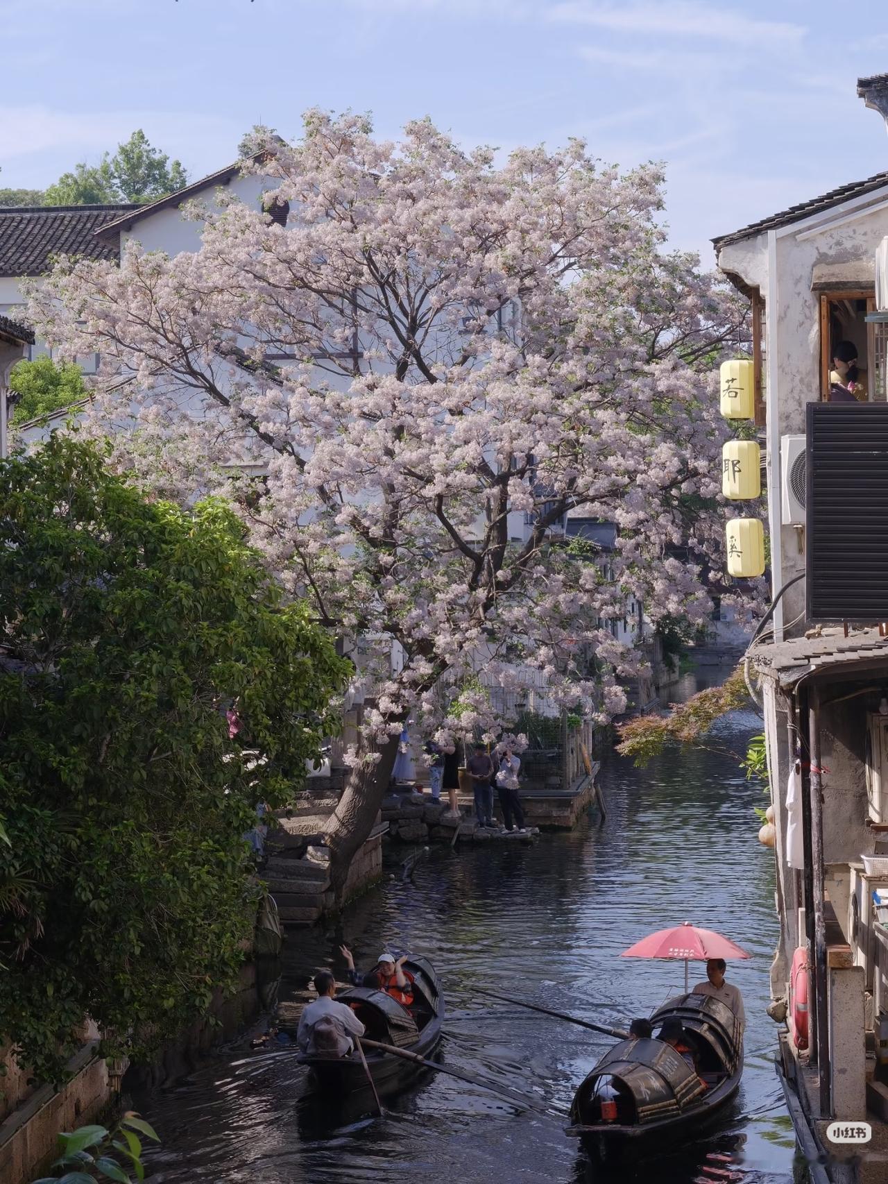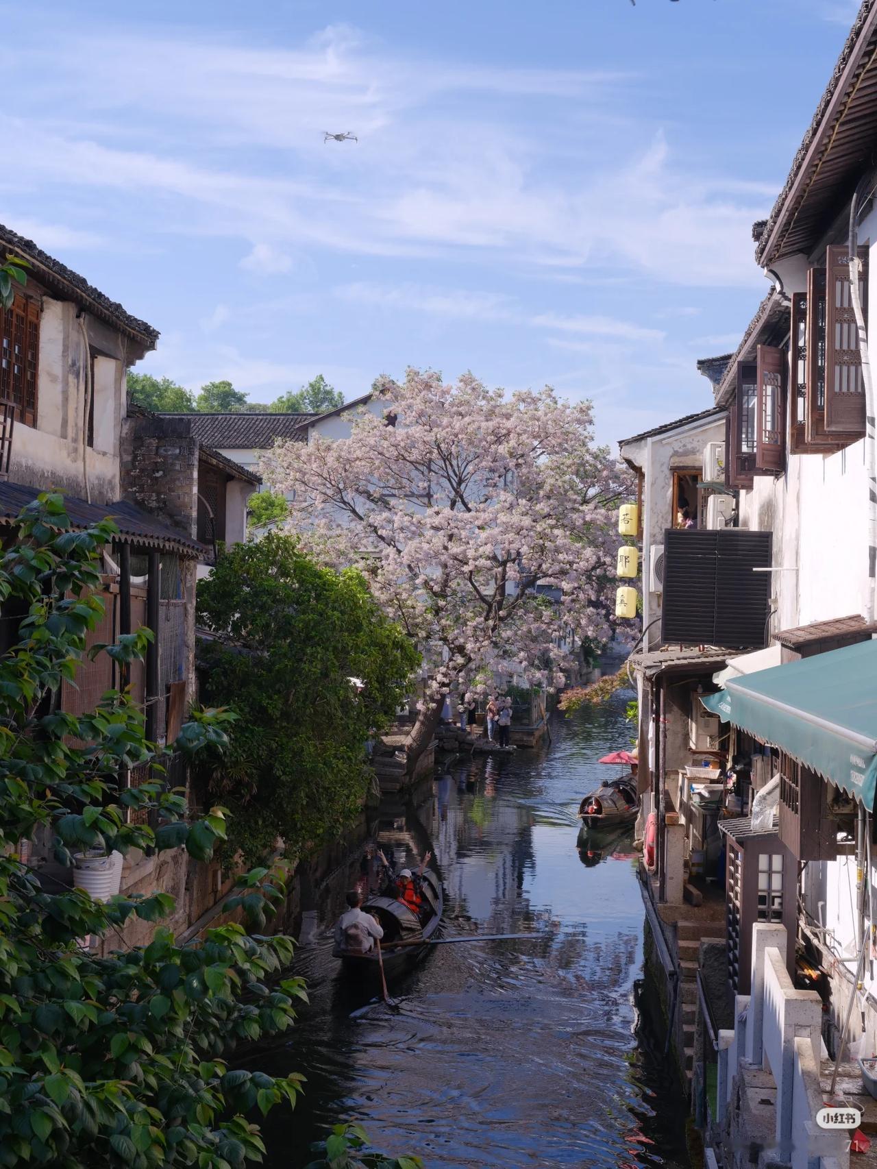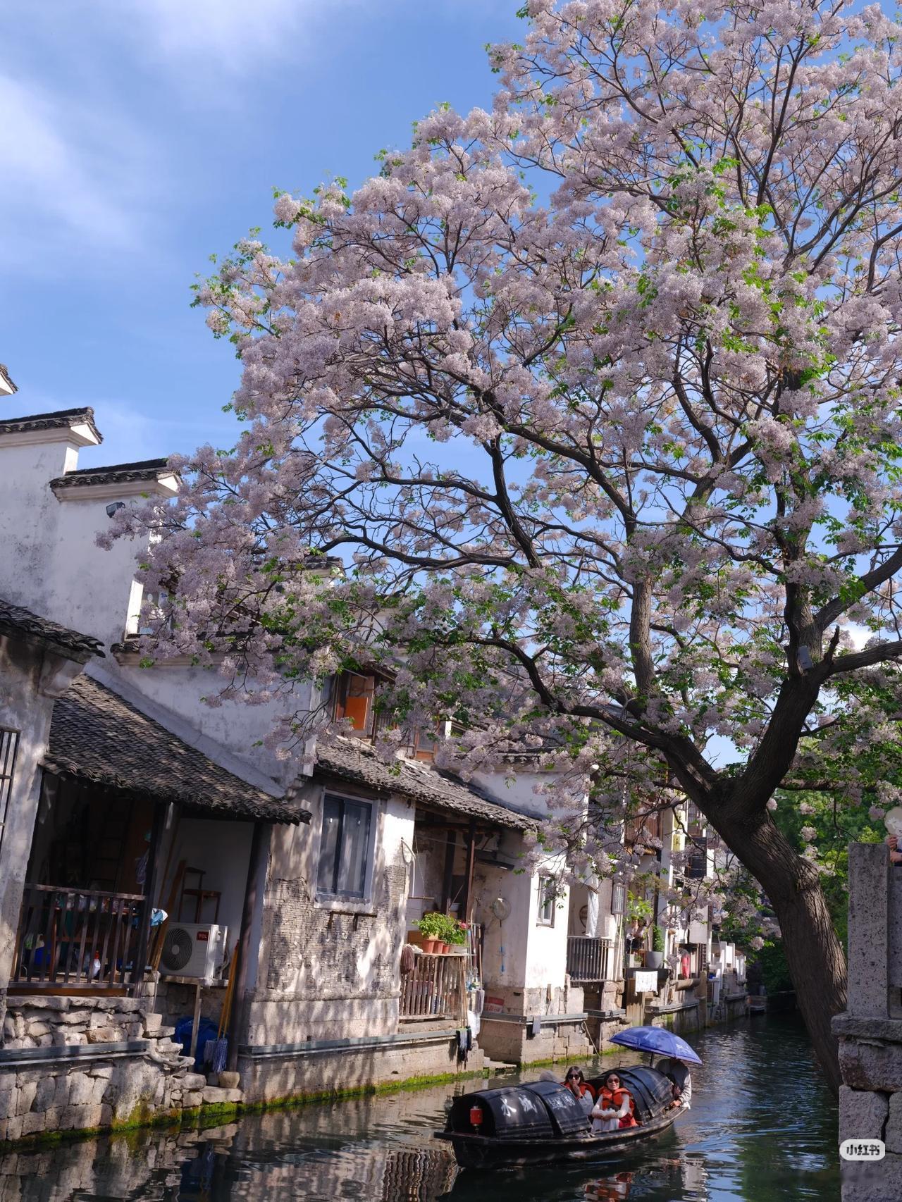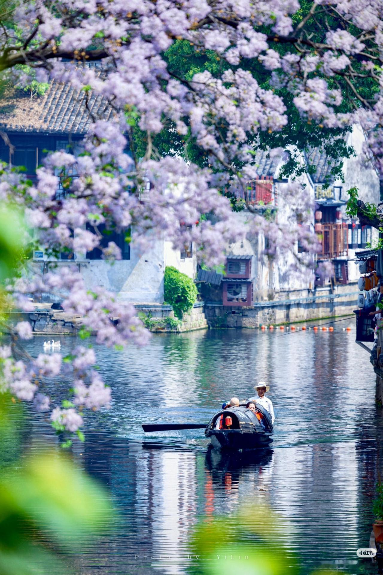 春光有信:苦楝花开,一梦入江南 四月总要来趟绍兴吧 苦楝花开,满树紫雪落江南 淡紫花穗如烟似雾 垂在青石板与流水之上 二十四番花信风,楝花为终 白墙黛瓦、小桥流水、乌篷船 这是江南春天最温柔的谢幕! 四月来绍兴吧!赴一场暮春的花事之约! 🛶 仓桥直街·真正的江南水墨画:直接导航「孔乙己酒家」(仓桥直街店),酒家旁的府桥就是顶流拍摄位!一定要等一艘乌篷船划过水面抓拍,白墙黛瓦+淡紫花穗+摇橹船,妥妥的水墨画跃然纸上。 📷 必出片四大机位: 1. 府桥俯拍:以苦楝花枝做前景,等乌篷船划过水面,记得连拍。 2. 巷口仰拍:以青瓦白墙为背景,聚焦满树繁花,新中式适配度满分。 3. 河岸平视:拍花影映水面,雨天更有烟雨江南的朦胧感。 4. 高处俯瞰:去若耶溪茶室二楼露台,高机位避开人群拍大景。 ⏰ 最佳拍摄时间: 清晨7:00-9:00,人少光线柔和,能拍出清冷高级感;傍晚16:00-18:00,落日金光照在紫花上,氛围感直接封神)。