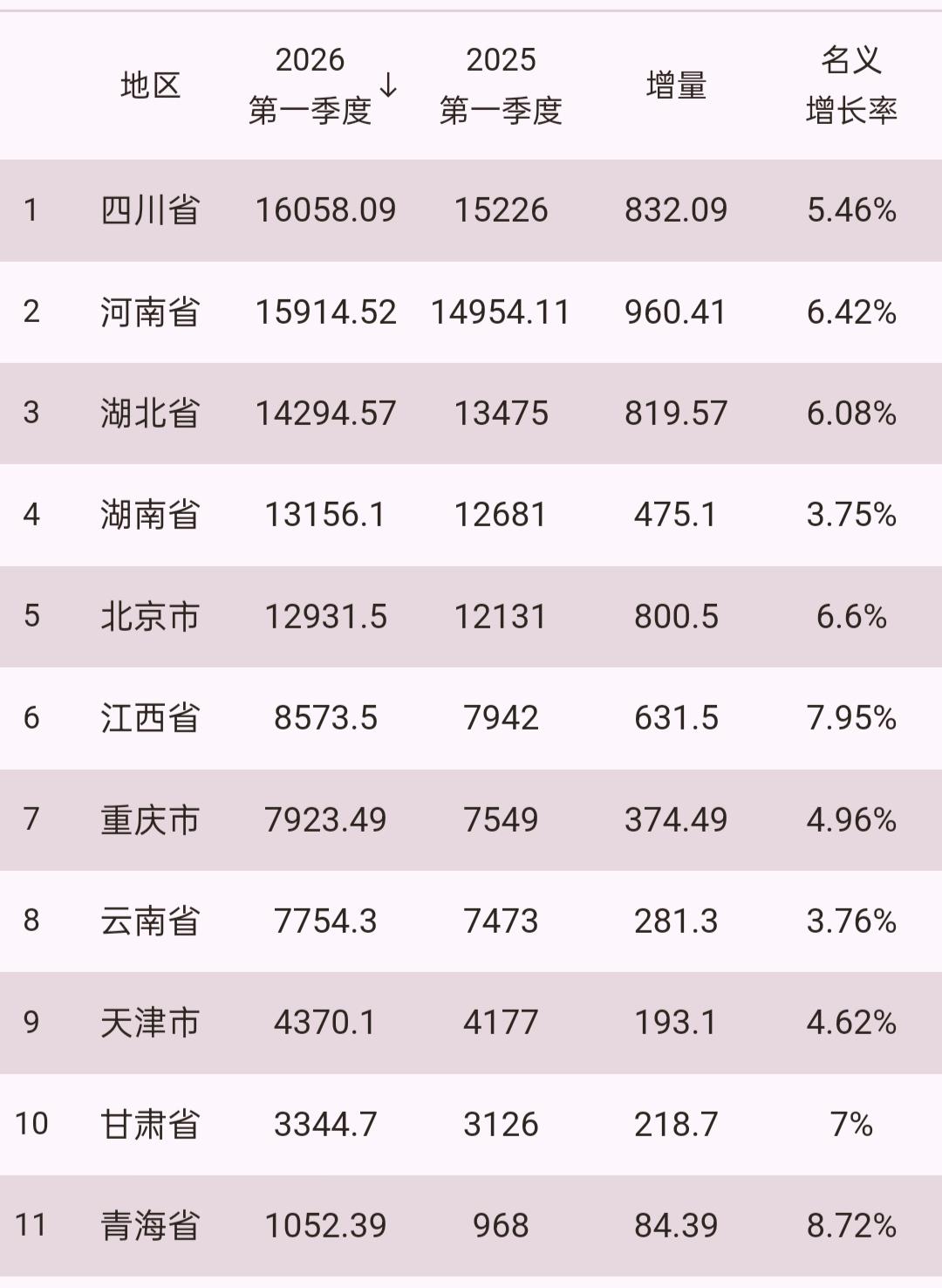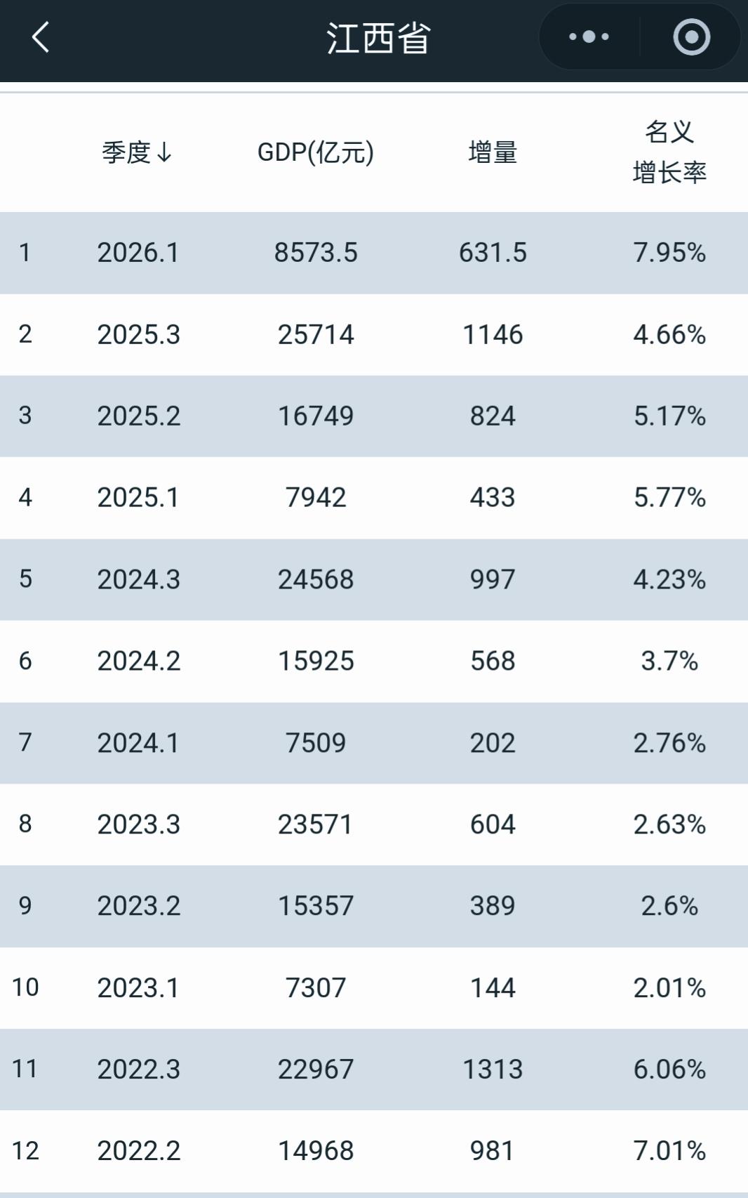 江西又行了!增速创5年来新高!中部地区除湖南外,全部强劲增长。 湖南受个别县上焦点访谈影响,主动挤水分,2027年应该会好受点。 中国四西好一点,现在中国四南需要努力,云南、湖南,需要探底回升。