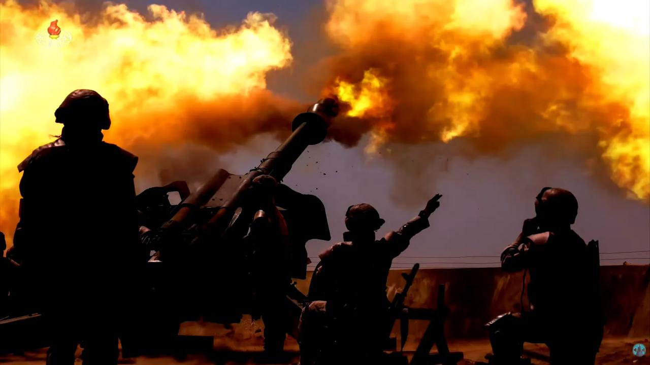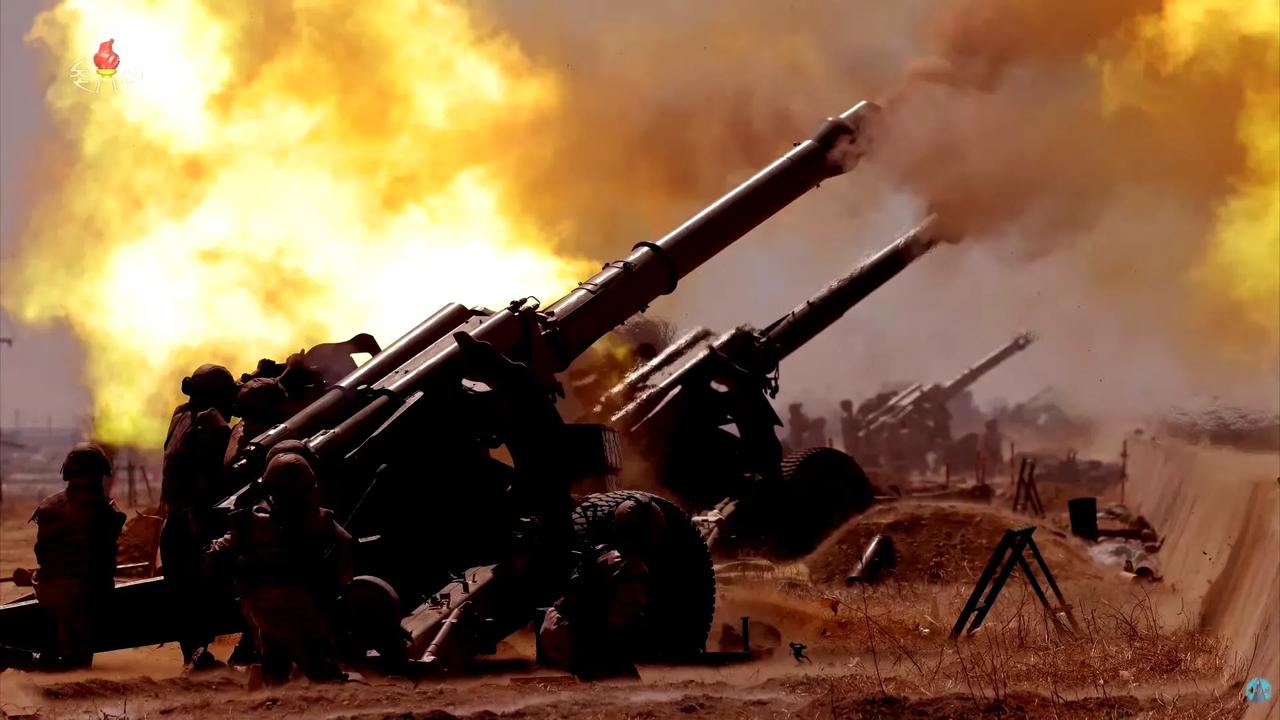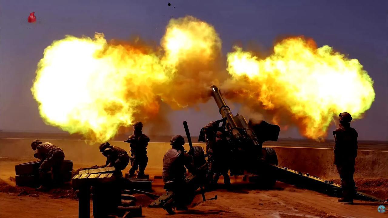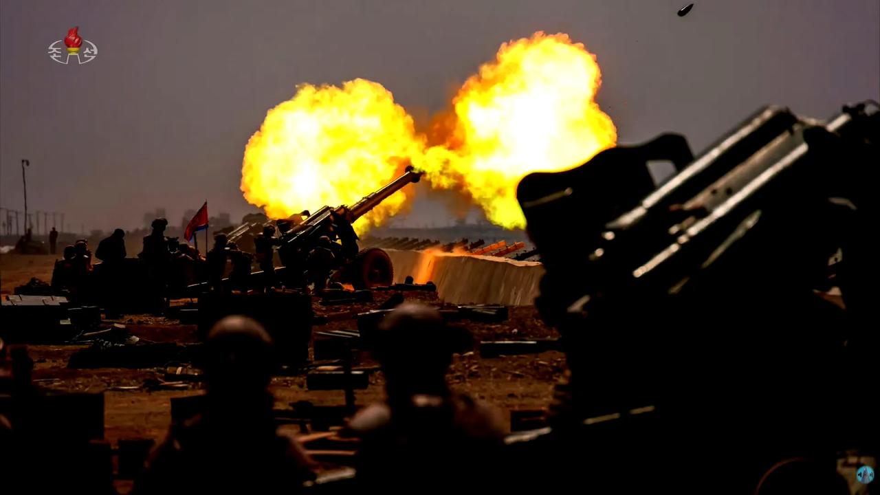 朝方的军宣水平挺高的。4月15日,人民军举行西部地区大联合部队炮兵分队射击竞赛,这组152毫米牵引加榴炮分队射击的照片拍得很棒,将炮兵的威势展现得淋漓尽致。