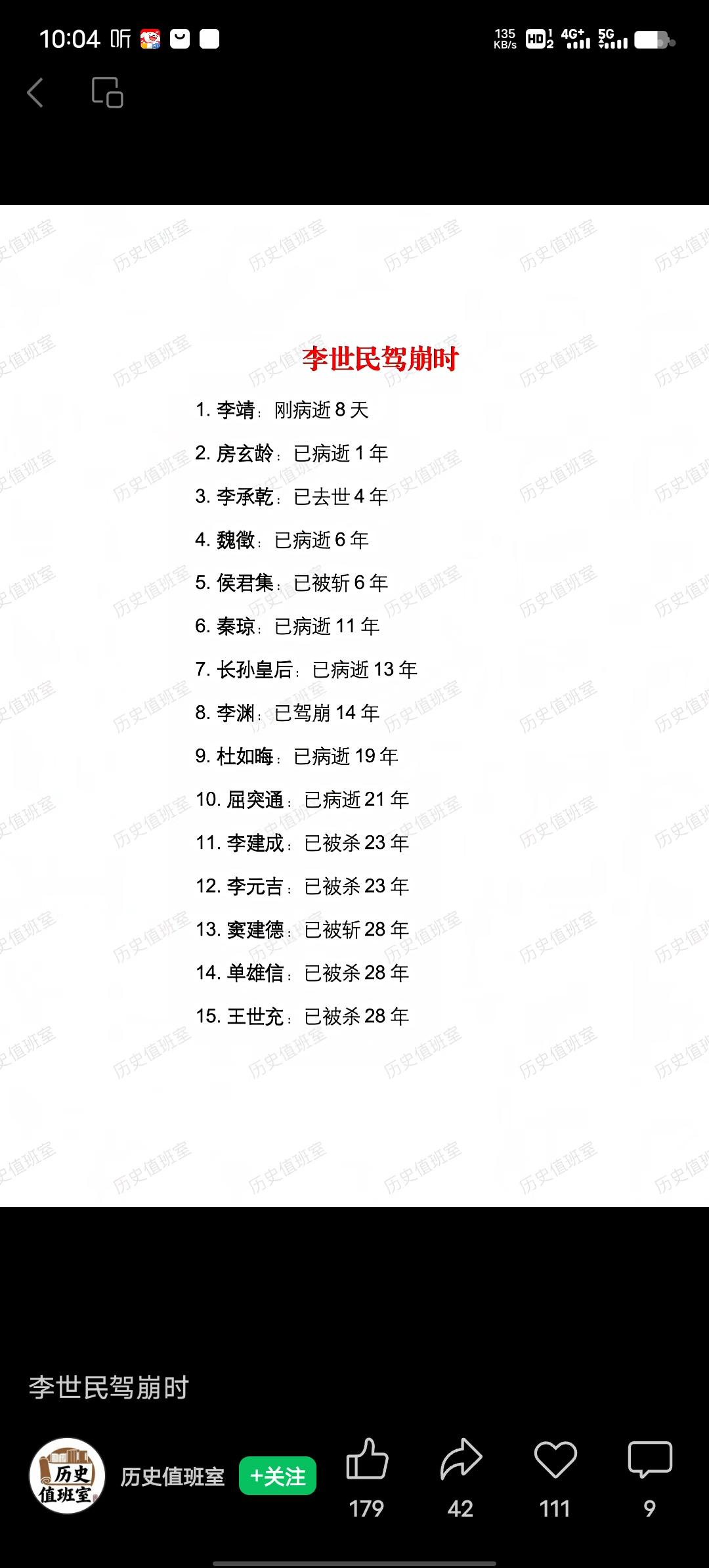 李世民驾崩于贞观二十三年(649 年),在此之前已有不少人离世。像玄武门事变中,云麾将军敬君弘、中郎将吕世衡战死;庐江王李瑗因谋反,于武德九年六月二十五日被王君廓斩杀。贞观元年,民部尚书、益州大都督府长史皇甫无逸忧虑而逝,开府仪同三司、燕郡王罗艺因谋反伏诛,民部尚书裴世矩、右仆射封德彝也相继去世。 凌烟阁二十四功臣里,也有部分人在李世民驾崩前离世。他们曾荣耀加身,却也在风云变幻的朝堂中经历着命运的起伏。