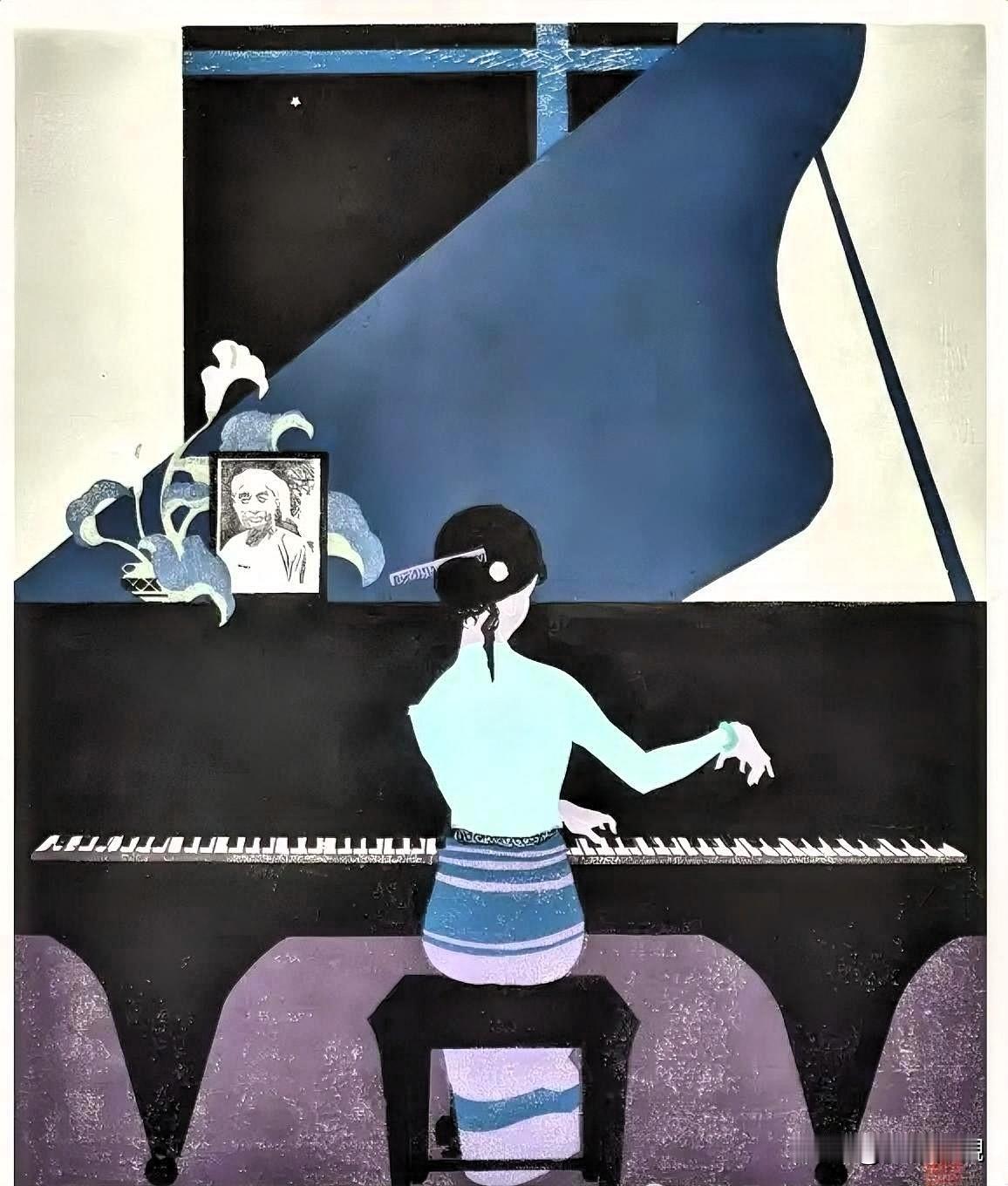 赏石 品佳作 质、色、形、纹、韵 木刻版画《心中的歌》李忠祥 作于1979年