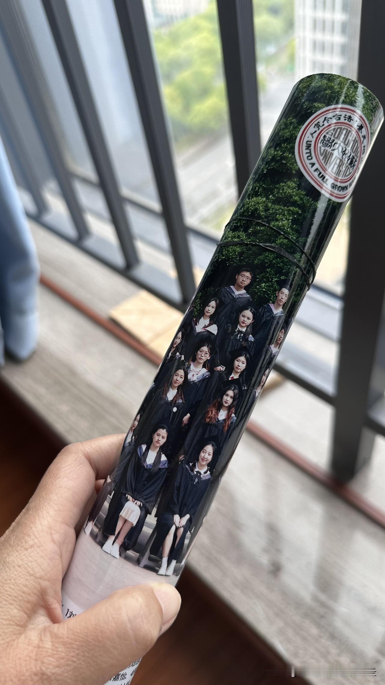 台北人在苏州,想请益各位:大陆本科毕业生,对于学院的毕业大合照,一般都是怎么保存的? 刚刚在找东西,意外发现书柜里被女兒蜜宝放在一隅的长条形盒子,封面写着「2024届毕业合影」。好奇地打开来看,是一约张80X30公分的学院毕业师生大合影。一张颇具纪念价值的照片,孤零零的躺在书柜角落。 人一生只有一次大学毕业,想起孩子的幼儿园毕业照,都还端正的挂在台北家中,那更具有意义的大学毕业照,是不是也该有个属于它的位置?不知道大家都是如何保存这种长条形、具有意义的大合照? 时间过得好快,转眼间孩子都本科毕业快两年了,下一次要参加的,就是她的硕士拨穗仪式了~