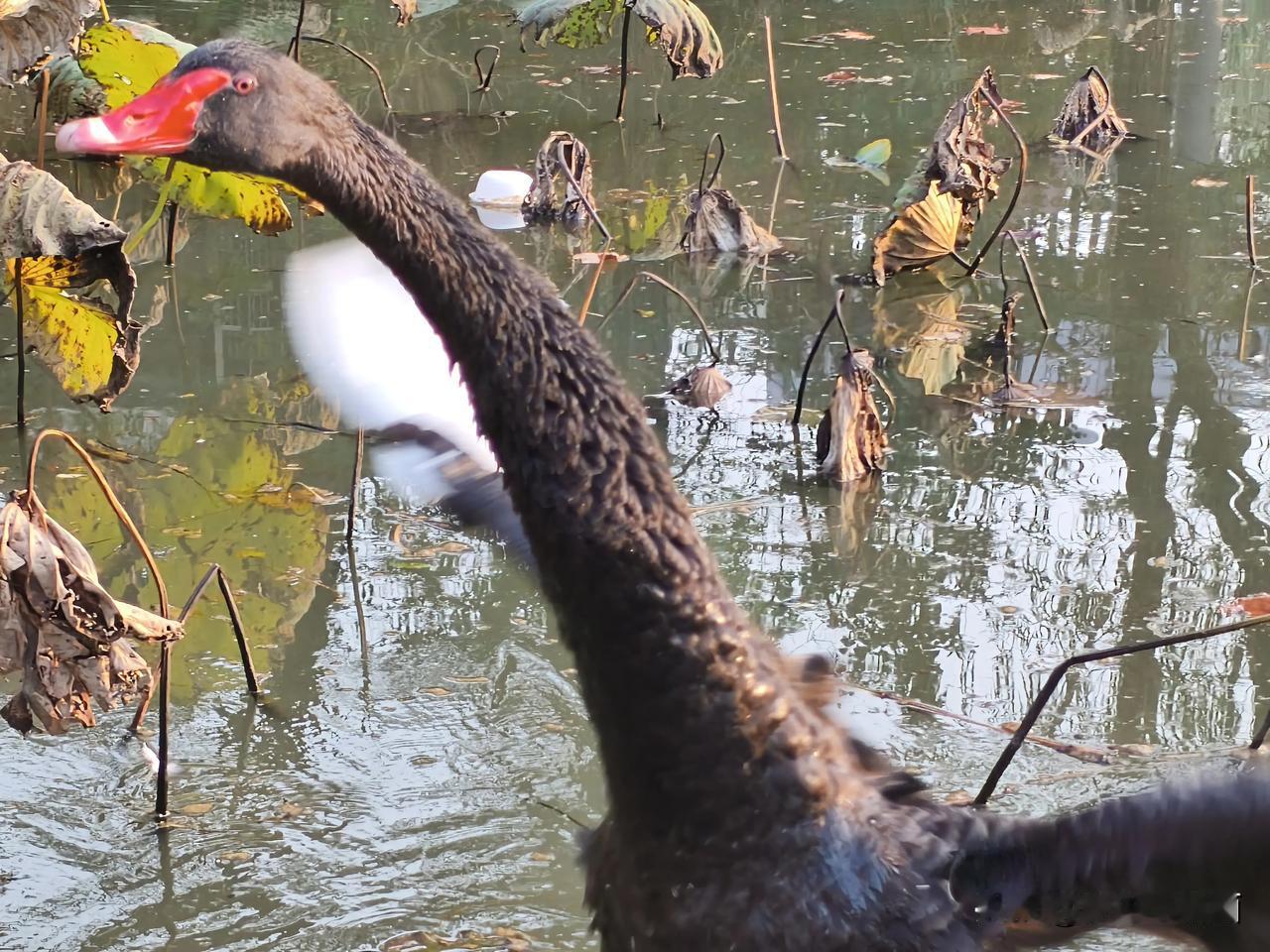 去年去南京中山陵紫霞湖时从明孝陵风景区看到了会跳舞的黑天鹅,这是我第一次亲眼看到黑天鹅在湖面跳舞的生动画面。 这个景点是开放式的,黑天鹅可以上岸与游客随意互动拍照打卡。有人给它们吃饼干🍪后它知道去湖里喝点水再吃,怕干着噎着。真实在太可爱了。有机会欢迎各地朋友可以去这里拍照📸打卡开心😊