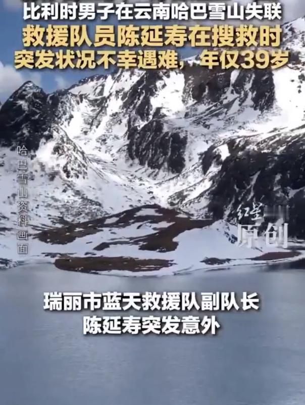 【蓝天救援队队员搜救时突发高反遇难,年仅39岁】救援队员寻找失踪比利时男子时牺牲 4月21日,云南德宏瑞丽市蓝天救援队发布悼念信息:39岁的副队长陈延寿,在香格里拉市哈巴雪山执行救援任务中不幸因公牺牲。21日上午,极目新闻记者从瑞丽市蓝天救援队获悉,陈延寿是在执行哈巴雪山搜救任务,寻找一名28岁失踪比利时男子时,突发急性高原反应,不幸牺牲。遇难救援队员参加志愿服务活动已8年 据瑞丽市蓝天救援队通报,4月20日凌晨4时许,陈延寿在哈巴雪山大本营区域(海拔约4300米)执行搜救任务时突发身体状况。同行队员第一时间为其吸氧,并根据状态变化持续进行心肺复苏、人工呼吸等全套专业急救措施。至凌晨5时许,陈延寿不幸牺牲。 21日上午10时,极目新闻记者联系瑞丽市蓝天救援队了解到,陈延寿是在哈巴雪山搜救28岁比利时失踪男子雨果时突发状况遇难。救援队队长高恒毅向极目新闻记者介绍,陈延寿当时突发急性高原反应,虽然队员及时采取救援措施,但仍未能挽回他的生命。 陈延寿,浙江籍人士,1987年3月5日出生,2019年加入蓝天救援队,现任瑞丽市蓝天救援队副队长,同时兼任行动组与装备组组长。自2019年起参加志愿服务活动,累计服务时长超过5000小时。他曾参与西藏大流沙、西藏定日地震、缅甸地震等重大灾害救援。此次哈巴雪山救援任务环境极端恶劣,高海拔寒风刺骨、冰坡陡峭湿滑,随时可能遭遇雪崩、冰裂等险情,陈延寿主动请缨深入搜救一线,用生命践行了“拯救生命、服务社会”的救援使命。 据红星新闻报道,目前陈延寿的遗体已被运送下山。此次搜救对象为28岁来自比利时那慕尔的男子雨果。雨果去年踏上“亚洲背包之旅”,计划出行约半年,此前曾在俄罗斯和蒙古旅行。他曾到过中国,并将此次亚洲之行的最后一站再次选在中国。雨果原计划于4月1日返回比利时布鲁塞尔,但未登机且与家人失联。3月26日,他在云南迪庆州哈巴雪山区域失联。雨果的哥哥和叔叔赶到香格里拉,通过朋友寻求有多年户外经验的摄影领队“大野”的帮助。经批准后,大野和三名经验丰富的领队进入封山期的哈巴雪山,搜寻两天无果。 4月16日,受雨果哥哥和叔叔委托,大野再次组织4名领队到达哈巴村。4月17日至18日,大野团队沿哈巴彝族村—黑海—登山大本营—登山第二大本营—彝族村路线进行搜救,未发现任何线索。4月18日,其他专业救援队抵达哈巴村,开展新一轮搜救工作,重点放在登山大本营至哈巴雪山登顶路线上。目前雨果仍无任何消息,他的哥哥和叔叔依然在哈巴村等待,搜救工作仍在进行。 关于陈延寿的后事,瑞丽市蓝天救援队表示,事件发生后已第一时间上报并启动最高等级善后应急专班,由队长牵头全面统筹,专项工作组全员在岗,全力做好家属安抚及各项善后工作。队长高恒毅透露,悼念仪式日期待定,相关后续情况将适时公布。(红星新闻、极目新闻)