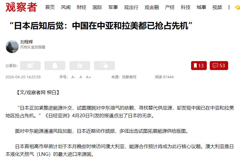都被中国占了,日本一点机会都没了! 日本现在急疯了,到处找中东以外的油气,想不用再看中东的脸色,结果跑到中亚和拉美一瞧,傻眼了——中国早就把好位置都占完了,它想插一脚都没地方下手。 但当它把目光投向中东以外的核心潜力区时,才发现中国早已凭借前瞻性布局和深度合作,占据了关键位置,留给它的空间少得可怜。 中国与中亚国家的能源合作,早已不是简单的资源买卖关系,而是基于地缘相邻、政治互信和全产业链协同的深度绑定。 中亚作为欧亚大陆腹地的能源宝库,拥有丰富的石油和天然气储量,而中国与中亚五国早已实现全面战略伙伴关系、人类命运共同体践行和共建“一带一路”合作文件的三个全覆盖,这种政治互信为能源合作筑牢了基础。 从实际合作来看,中哈原油管道作为中国第一条陆路跨国原油管道,已经稳定运行多年,中国—中亚天然气管道A、B、C线持续输送清洁能源,土库曼斯坦成为中国在中亚最大的管道天然气供应国,这些基础设施早已形成成熟的运输网络,将中亚的能源稳定输送到中国。 更重要的是,中国的合作模式远不止于上游勘探开发,还延伸到了炼化、化工、工程服务等全产业链,比如中石油参与扩建的哈萨克斯坦奇姆肯特炼油厂,年产能提升至1200万吨,帮助当地实现能源资源就地增值,这种共赢模式让中亚国家更愿意维持长期稳定的合作关系,日本想要中途插入,自然难以撼动既有的合作格局。 在拉美地区,中国的布局同样展现出前瞻性和契合当地需求的特质,这让日本的介入变得难上加难。拉美国家近年来普遍在推进绿色低碳转型,需要大量资金和技术支持来发展清洁能源,而中国恰好在水电、风电、光伏等领域拥有成熟的技术和丰富的项目经验,双方合作形成了天然的互补。 中国企业在巴西投资建设席尔瓦尼亚换流站,将东北部的风电、太阳能输送到首都地区,为1200万人口提供电力;在阿根廷打造的高查瑞光伏电站,成为南美装机容量最大、海拔最高的光伏项目;秘鲁的钱凯港作为南美首个智慧绿色港口,全程采用绿电驱动,这些项目不仅解决了当地的能源需求,还契合了全球低碳发展的趋势,得到了当地政府和民众的高度认可。 中国的合作不是单纯追求资源获取,而是通过“投资+技术+基建+民生”的综合方案,与拉美国家形成深度利益绑定,比如比亚迪改造巴西废弃工厂生产新能源汽车,既带动当地就业,又助力工业升级,这种合作模式远比日本单纯寻求能源采购的思路更具吸引力,也让拉美国家在能源合作上更倾向于选择中国这个长期伙伴。 日本自身的布局策略和合作模式,进一步加剧了它在这些地区的被动局面。日本虽然早在1997年就制定了中亚战略,也通过官方发展援助等方式进行过投入,但长期以来其合作重点更多集中在医疗、道路 renovation 等民生领域,在能源核心领域的投入力度和持续性远不及中国。 而且日本的合作模式多以短期采购、技术输出为主,缺乏像中国这样全产业链布局和基础设施建设的长期投入,难以与当地国家形成深度利益捆绑。 在拉美,日本同样面临类似问题,当中国已经通过大量绿色能源项目和基建投资与巴西、秘鲁、阿根廷等国建立紧密合作时,日本才刚刚启动相关探索,自然难以找到切入点。 更关键的是,中国油企的海外战略已经升级为“韧性优先+精准选择”,聚焦优质项目和核心区域深耕,通过联合运营、利润分成等模式降低风险,提升合作粘性,而日本企业在国际能源竞争中,无论是技术整合能力还是全产业链服务能力,都难以与中国企业抗衡。 至于日本首相高市早苗计划访问澳大利亚谈能源合作,看似是开拓新渠道,实则只是对现有供应关系的修补,根本解决不了多元化的核心问题。 澳大利亚本来就是日本最大的液化天然气进口国,双方的能源贸易已经形成固定格局,日本从澳大利亚进口的LNG规模早已处于高位,即便此次谈判能达成新的协议,也只是在现有基础上的补充,无法形成新的大规模供应增量。 更重要的是,依赖澳大利亚同样存在风险,液化天然气价格受国际市场波动影响大,且海运成本高、周期长,无法从根本上改变日本能源供应渠道单一、抗风险能力弱的现状。 日本想要通过澳大利亚打破能源困局,本质上是换了一个依赖对象,而非真正实现供应多元化,这也从侧面反映出它在中东以外地区难以找到有效突破口的无奈。 中国在中亚和拉美的能源布局,从来不是所谓的“抢占”,而是基于双方需求的互利共赢,是长期投入、技术赋能和模式创新的结果。这些合作既满足了中国的能源安全需求,也为当地国家带来了经济发展、基础设施升级和绿色转型的机遇,得到了当地政府和民众的广泛认可。 而日本的困境,核心在于其能源战略的滞后性和合作模式的局限性,当它意识到需要开拓新供应地时,中国已经与相关国家建立起难以替代的合作关系,这种格局上的差距,不是短期外交谈判就能弥补的,这也是日本在中东以外能源市场处处碰壁的根本原因。