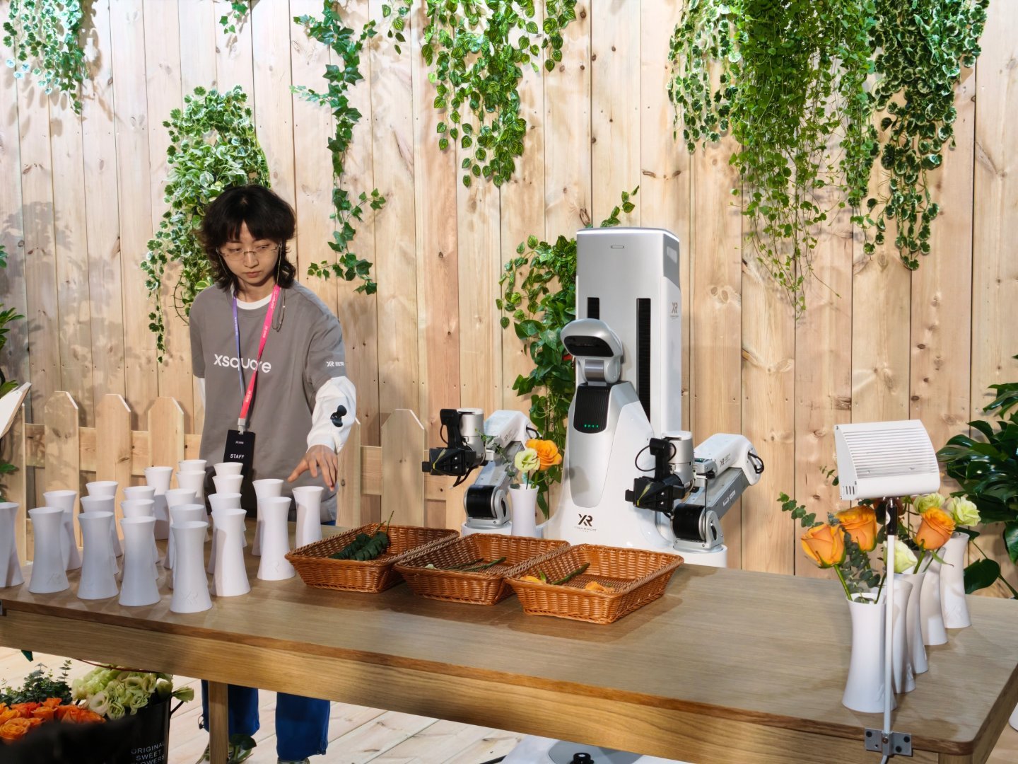 抵达自变量发布会现场~入口处就是机器人插花展示~听说这次的机器人会做家务一会儿和大家一起见证一个家庭成员的诞生~ 自变量421发布会 一个家庭成员的诞生