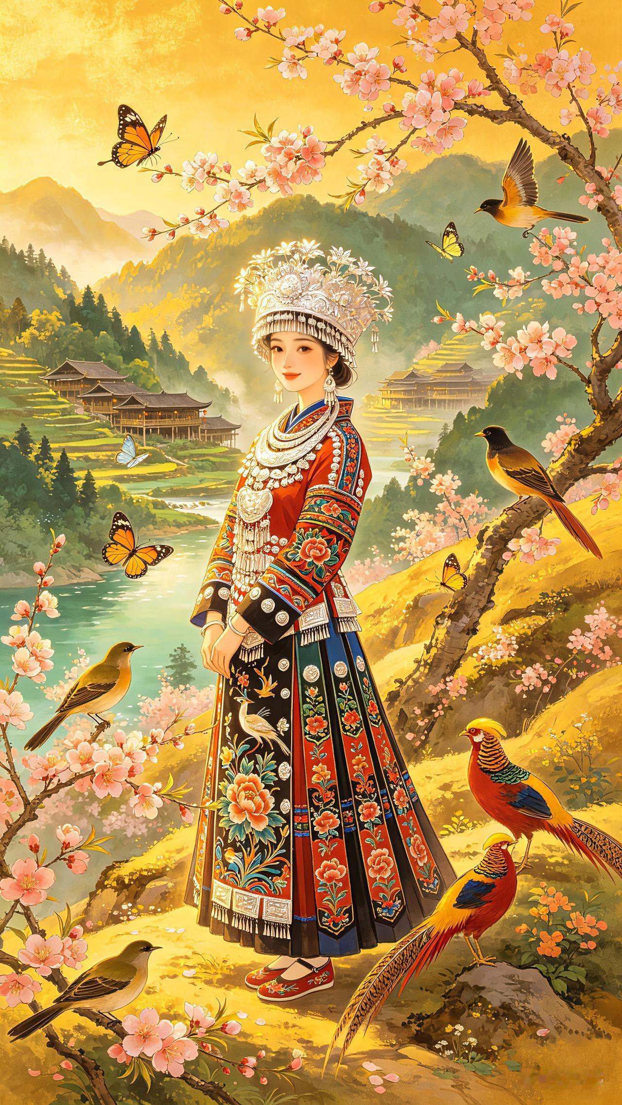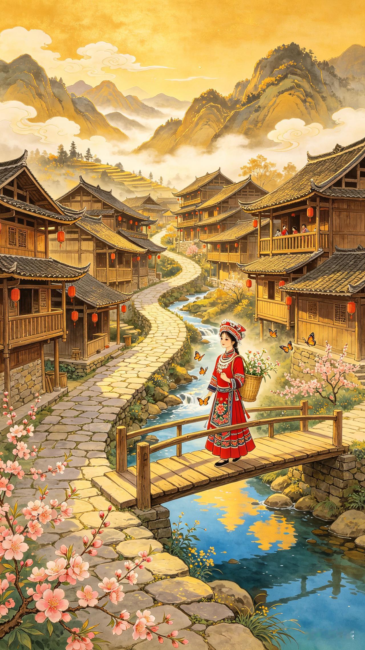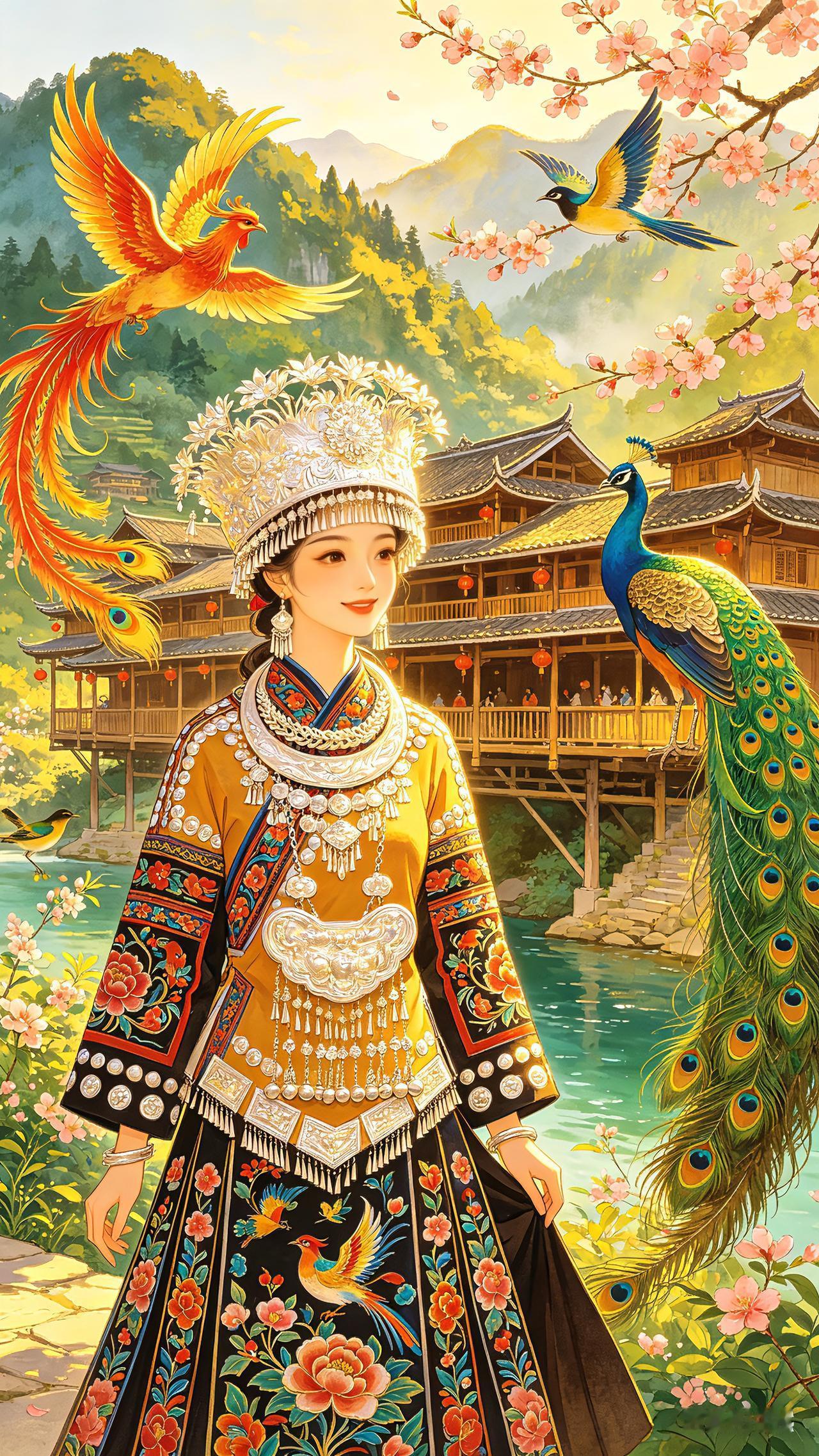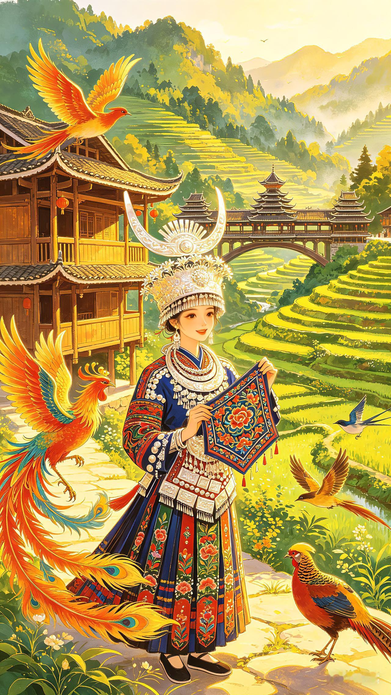走进武陵山的深处,吊脚楼在晨雾里若隐若现,梯田被晨光染成了流动的金浪。土家姑娘的银饰在风里叮当作响,手里的织锦绣满了大山的花语。凤凰掠过桃花枝桠,锦鸡在田埂上踱步,连风里都带着米酒和山花的香气。原来最动人的风景,从来都不是刻意寻找的远方,而是藏在这一帧帧鲜活的烟火里,藏在土家人世代守护的山水与时光里。
