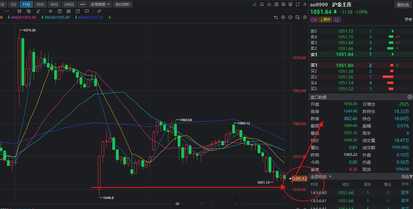 黄金再次考验1050附近的支撑,这次还能撑住吗?还是要一泻千里。