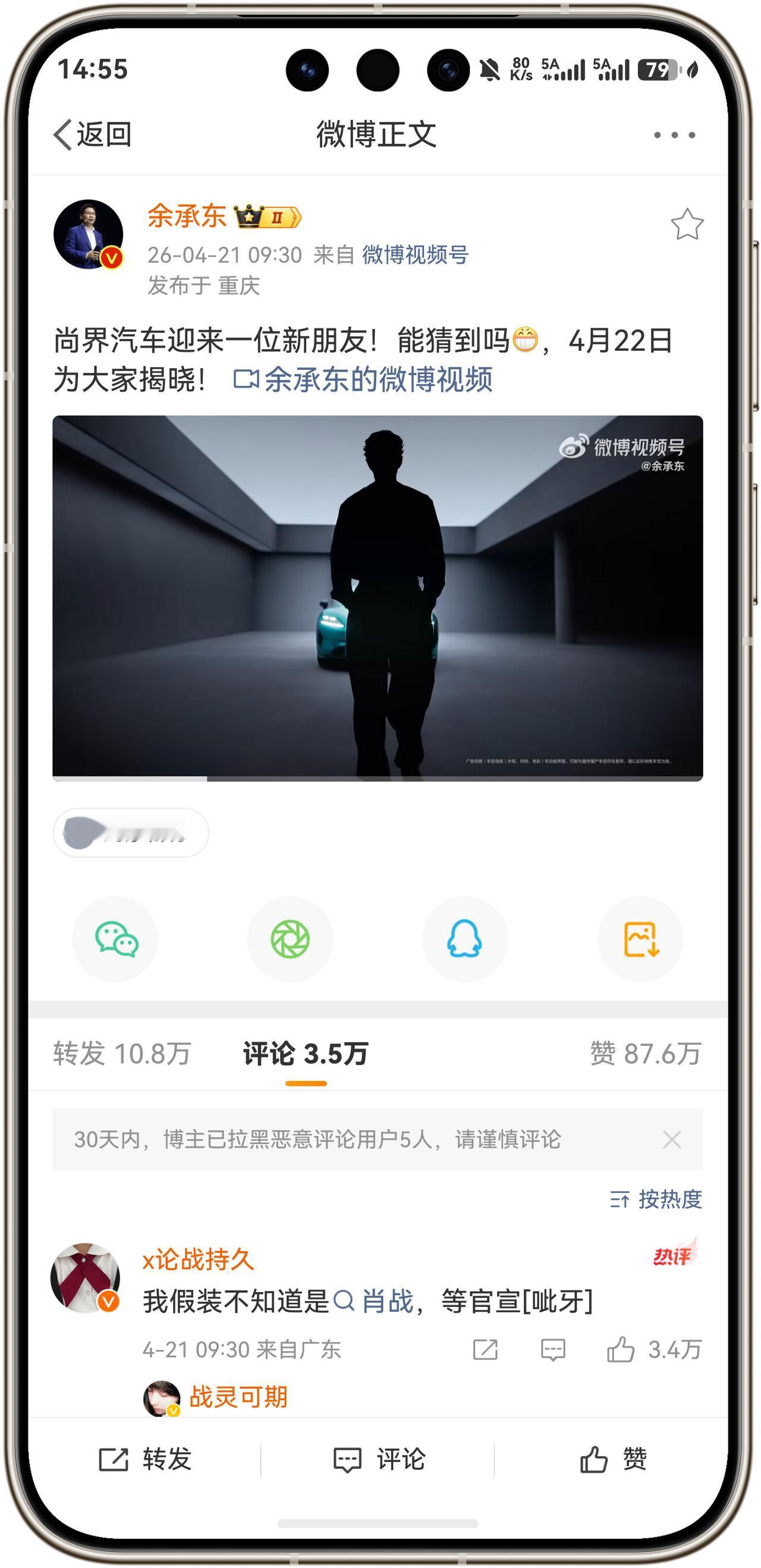 重磅消息!余承东亲自官宣尚界汽车代言人—肖战!尚界Z7和Z7系列即将发布,让我们一起期待4月22日鸿蒙智行发布会,余总将会在发布会正式揭晓尚界汽车代言人!