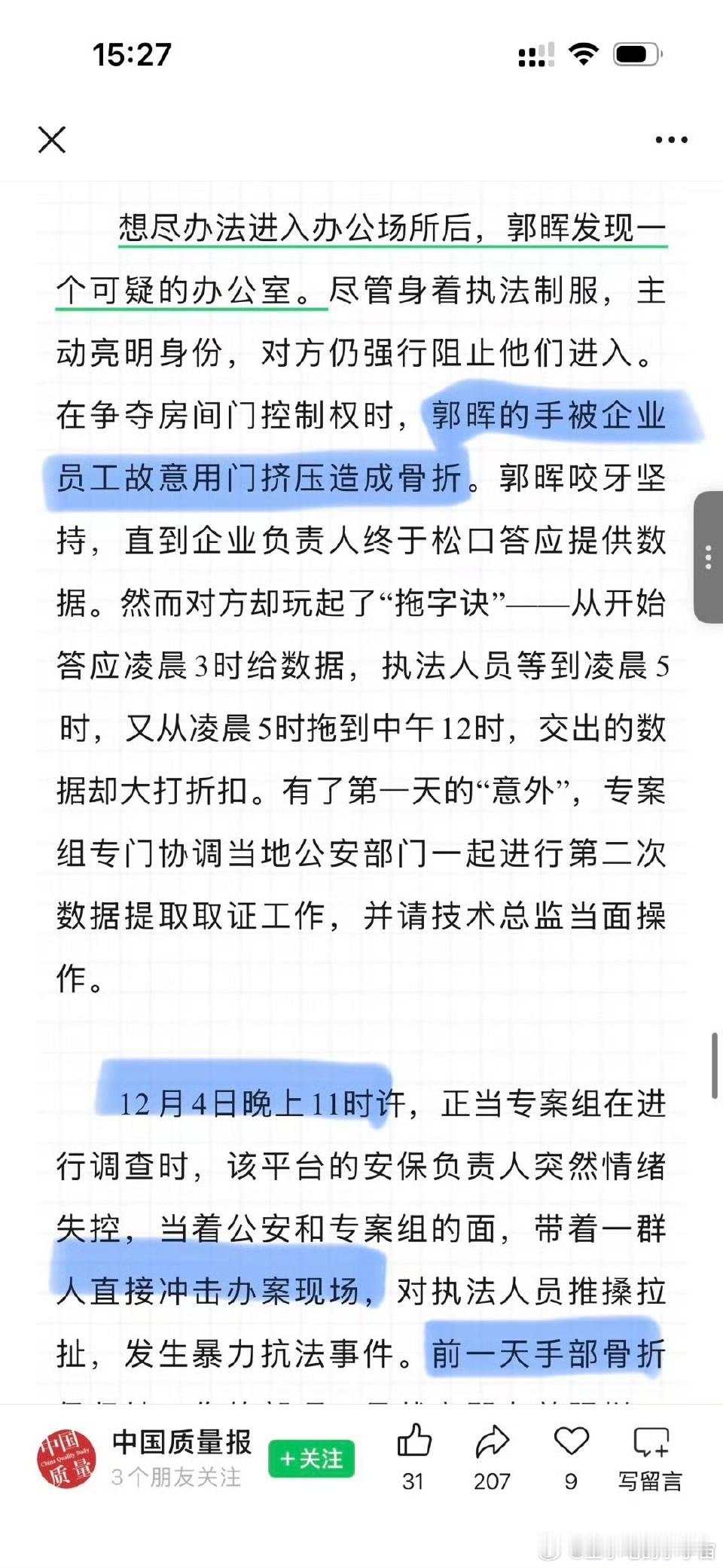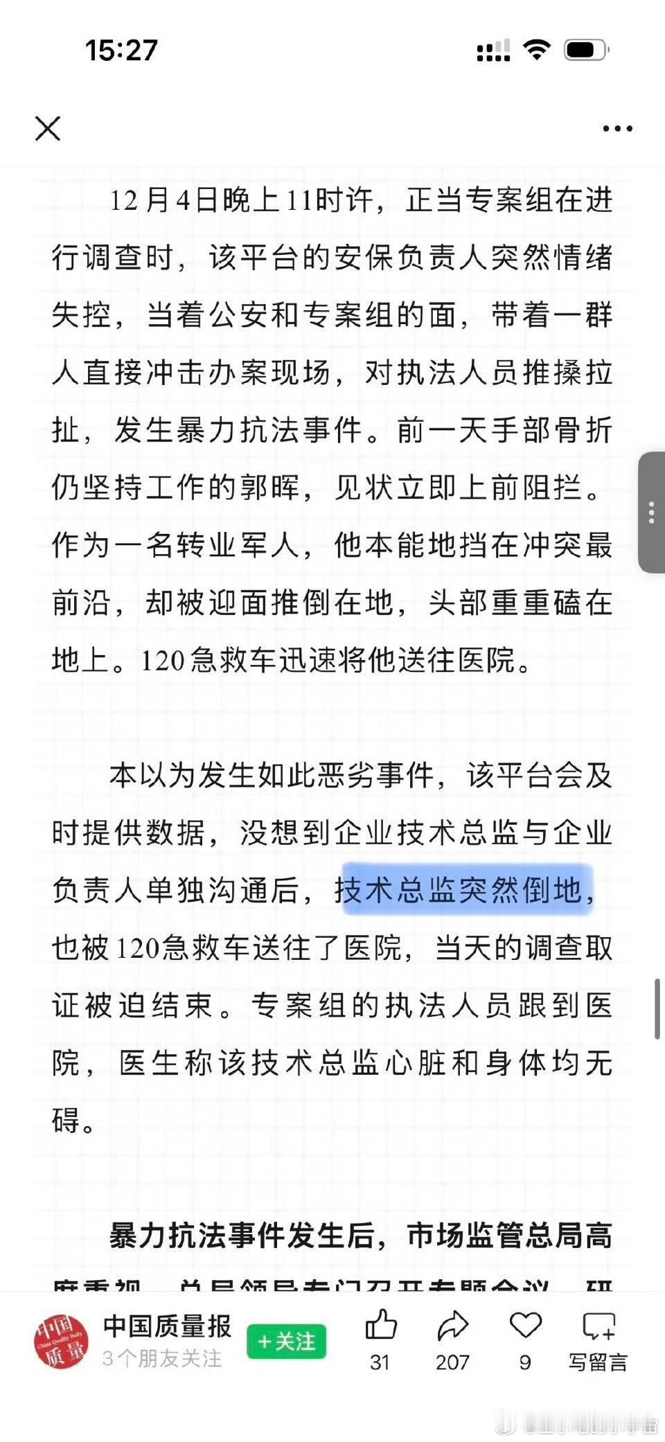 1. PDD不让执法人员查看办公场所,硬是让一群人熬了一整宿。直到半夜11点、下班高峰期过去后,执法人员才摸到真正的办公室。2. 12月3日深夜,有工作人员的手指被PDD员工故意用门夹断。3. 到了4日,这名工作人员带伤继续上岗,又被PDD的人推倒在地,头部也磕伤了。4. PDD内部沟通后,技术总监也来了个“战略性倒地”,后来医院检查称其身体并无大碍。5. 5日晚,总局领导到场督战,PDD又上演了生吞A4纸的离谱桥段,实在让人怀疑是不是谍战片看太多了。
