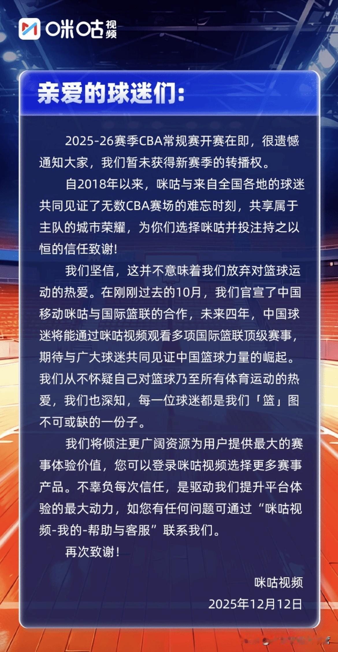 这两天,cba新赛季要在哪里看直播的问题吵的沸沸扬扬,这都2026年了,想都不敢想! 在互联网、融媒体、短视频、网络时代如此发达的今天! 作为中国职业篮球顶级联赛的CBA,居然还没敲定最终的媒体合作方,也就是能全量转播全联盟20支球队的平台! 不是央视频一天一场,也不是抖音精选热门几场赛事转播的这种模式! 毕竟很多人不是有那个条件,晚上黄金时间待在家里看地方台转播,要靠电视才能看上主队的比赛!甚至像上海这样的大都市,其地方体育台都没有购买版权,上海球迷上哪去看今年极大补强的上海男篮呢? 据悉咪咕平台下午跟CBA公司又谈崩了,希望后续双方各让一步,还有回旋的余地! 大家只想有个能专门看球的平台,固定的,不用来回切换app,仅此而已! 办人民满意的联赛,不仅仅只是一个口号!