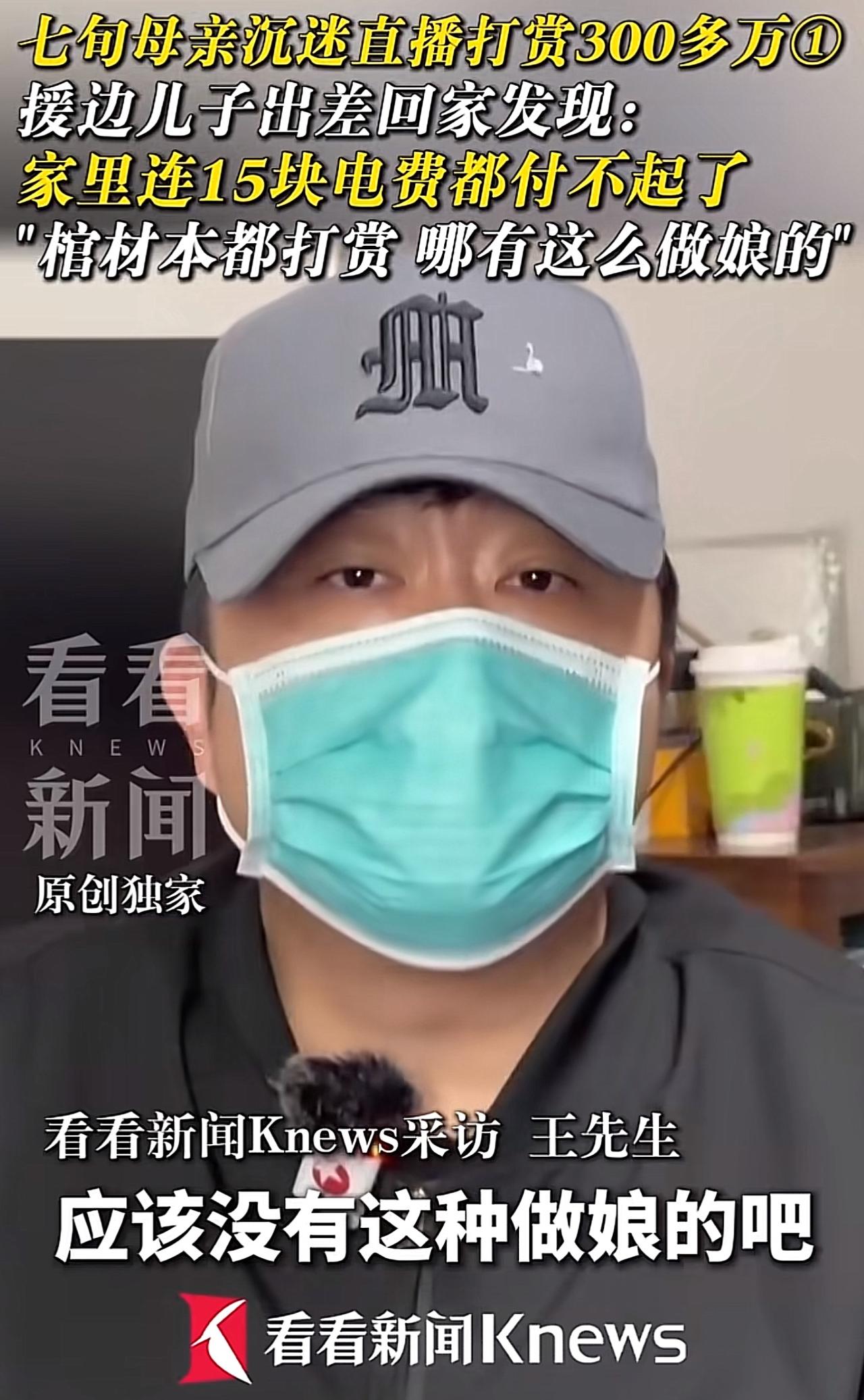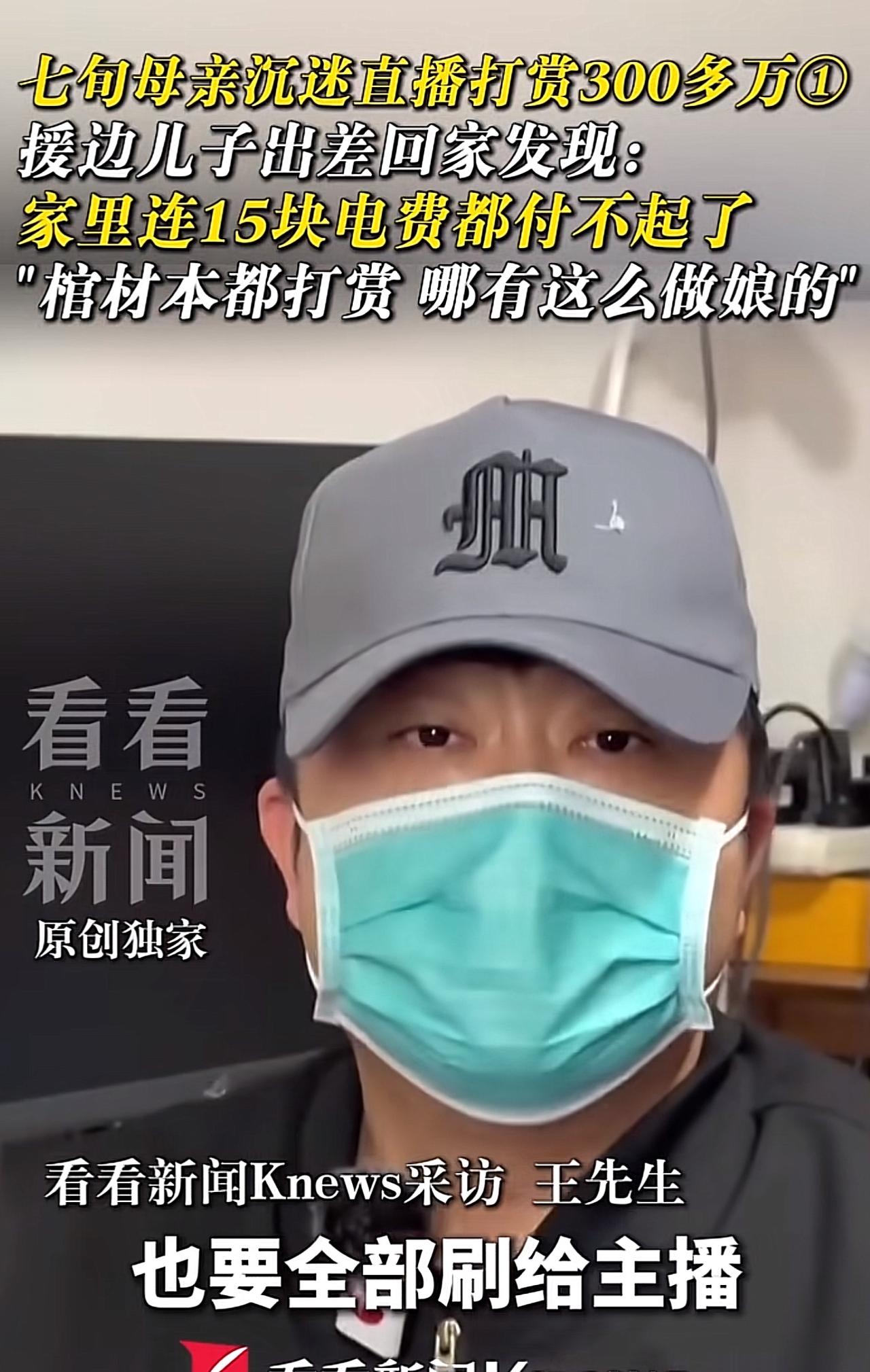 七旬老太也疯狂,300多万打赏主播。可我们该指责还是心疼呢? 七旬母亲,把一辈子攒下的300多万退休金,全打赏给了素未谋面的主播。援边的儿子出差回家,才发现家里连15块电费都付不起,崩溃到质问:“哪有这么做娘的?棺材本都给打赏了!” 儿子的愤怒,我们完全能理解。300多万,是养老钱,是救命钱,就这样被轻易挥霍,换谁都心疼。 可冷静下来想想,她真的是“糊涂”吗? 她连主播长什么样都不知道,却愿意倾其所有。图的哪里是那些虚拟礼物?不过是直播间里,主播一声声甜腻的“阿姨”,一句句贴心的安慰,填补了空巢老人的寂寞。 我们许多家庭都是子女为了生活,奔赴远方,老人在老家独守空房。日子久了,孤独像潮水一样涌来。而手机里的直播间,成了他们唯一能听到声音、感受到“被重视”的地方。 那300万打出去的,不是钱,是她渴望被看见、被陪伴的心。也许我们做儿女的应该反思一下,怎么样才能让老人老得其所,老得其乐,让他们生活得更加充实。 其实无论是老人,还是我们中年人,还是孩子,更多的时候是因为无聊才拿起手机,才浏览网络。如果生活安排的满满的,谁又愿意在虚拟世界里寻找安慰。 所以我们看到的不能只是一个老人打赏的问题。而是一个让老人怎么安度晚年的问题。 你身边有类似的情况吗?对于老人沉迷直播打赏,你怎么看?