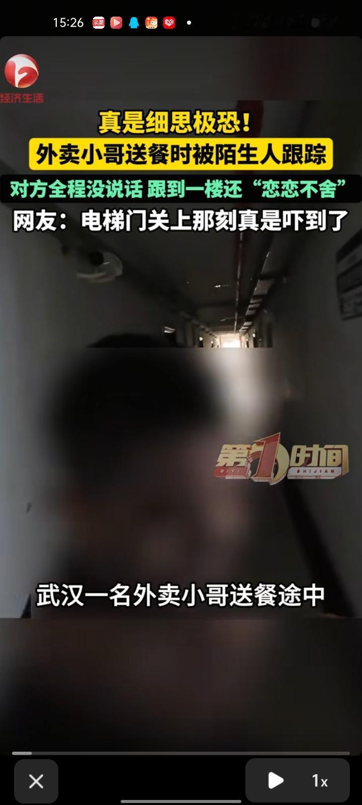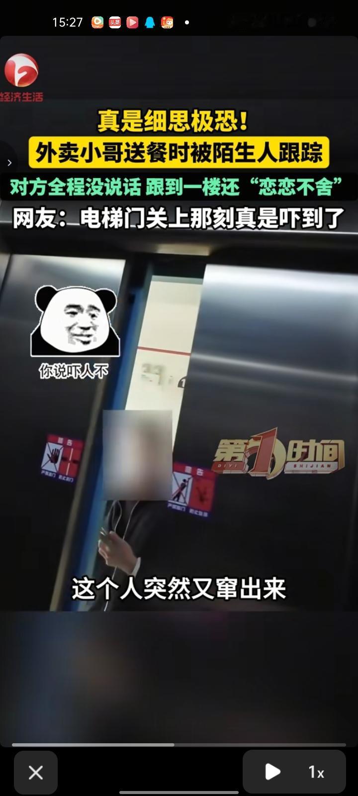 4月20日,湖北武汉。外卖小哥送餐途中被陌生人一路跟着,对方是从中间楼层进了电梯,然后一直跟到13楼。 更吓人的是,小哥送完餐后回到电梯,电梯门关上的那一刻,那个人突然又窜出来,挤进了电梯,整个过程前后也就几分钟。 小哥说,当时虽然对方没做什么,但就是后背发凉,光是画面就够让人紧张的,不知道他到底想干嘛。因为急着送下一单,小哥没多想就走了。