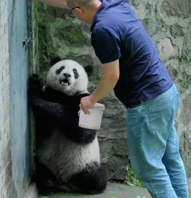 国宝是有脾气的,它们也会生气,会发火!新乔(米花糖)想打开员工通道进去看看,视察视察奶爸们的工作,奶爸不让,它就生气了,拍着门对奶爸说:“我也在上班,我也是员工,为什么我不能进去?你不让我进去看看,我就在地上撒泼打滚,把你挂在网上!”它见奶爸没有反应,于是随即便躺在地上翻来覆去,就想要奶爸打开门让它进去,模样可爱极了!新乔很聪明,人里人气的,就像个人类小孩一样,因为小孩子都认为在地上撒泼打滚,大人就会心软,就会让他们一步,从而达到自己的目的!大家都说奶爸太宠它了,所以它才会在奶爸面前肆无忌惮有恃无恐撒泼打滚,真是个幸福的有个性的可爱乖宝宝![比心][大笑]新乔 大熊猫新乔 米花糖 大熊猫米花糖 熊猫 大熊猫 国宝 (cr:@阿秋的熊猫🐼日记)