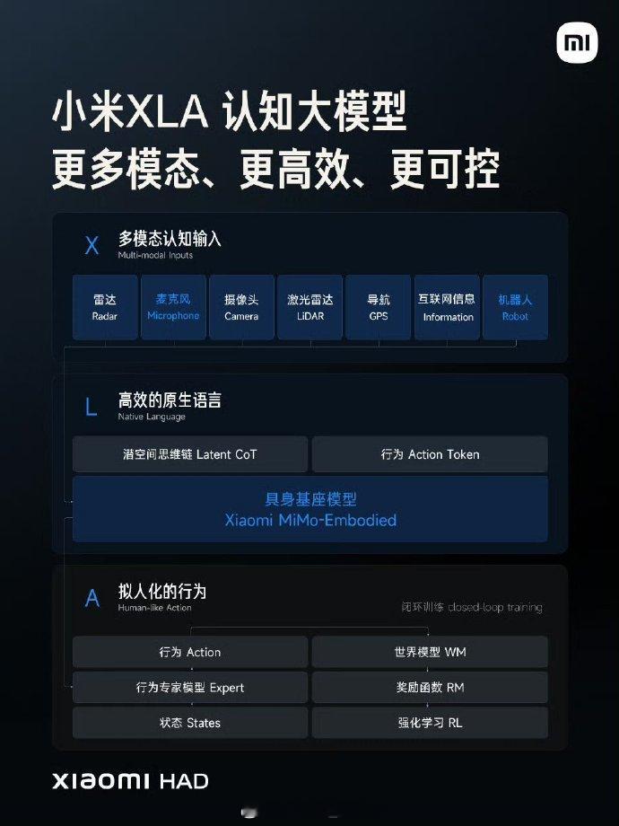 小米用 2 年走完同行 5-10 年技术路XLA 大模型以统一具身架构领跑行业,让汽车成为最先落地的民用具身智能载体,重新定义高阶辅助驾驶新范式车是最先落地的具身智能