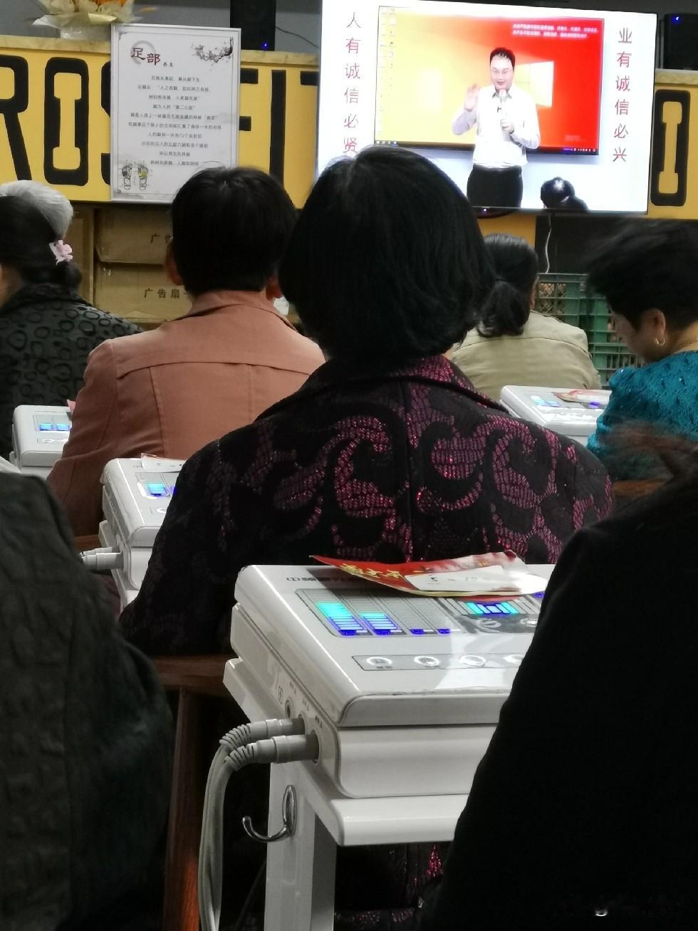 昨天,朋友打电话说:她参加了一个活动,又能强健身体,又能免费领礼品。人特别多,不是那些骗人的活动。 盛情难却,我就抱着试一试的心态去了。大老远就看见排着长队,到跟前时,朋友已经给我领了一张纸卡,买了三块纱布。然后进到一个底下室,等待上一场的人出来。 过了一个小时后,门开了里面的人挤着出来了,我们这波人挤着往回走。几乎都是六七十岁的人。 我第一次来,拿上纸卡对号入座后,有个工作人员问我:“你怎么知道的信息,然后很热情地给我开机,然后系上腰带”。 这是一个中视频激光治疗仪,开机后,然后就开始看视频,出示的都是一些案例,屏幕前面摆着二三十筐鸡蛋。整个大厅里贴着标语,不能接打电话,不能交头接耳之类的规章制度。好像一个考场,考生是48个,只不过这都是老年人。 55分钟到了,讲座讲完了机子也停机了,然后每人领上6颗鸡蛋,可以回家了。 我们出来时,门口又一群人挤进去了,外面还有排着长队等着呢! 我在想,如果是骗局,他们敢这么大胆宣传吗!朋友们参加过这类活动吗?