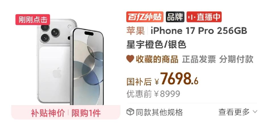 苹果17 Pro又降价了,估计是想在竞争里稳住位置吧。现在256G差不多7698,照这势头,618会不会降到7500?感觉有戏,毕竟大促期间优惠向来猛,想入手的可以蹲蹲看。