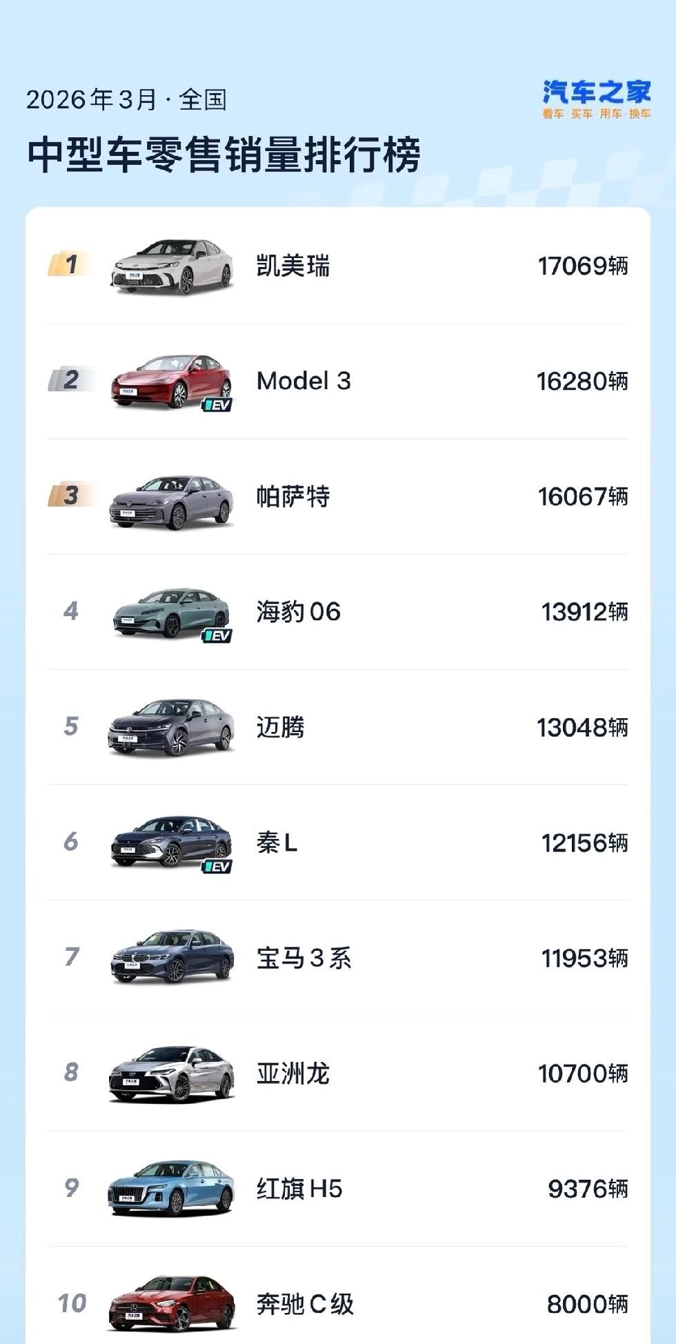 为啥B级车油车销量这么坚挺啊?电车渗透不了 发现B级车市场油车销量是真坚挺,3月份销量前十,就3台电车(实际上可以说是两台。。)其他全是油车,网上被吐槽得一无是处的凯美瑞销量第一,网上看不起的3系和C级销量也不赖。这是咋回事?电车为啥渗透不了这个市场呢?