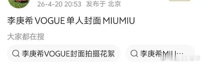 miumiu推封,李庚希vogue单封。这待遇比赵今麦好多了吧?