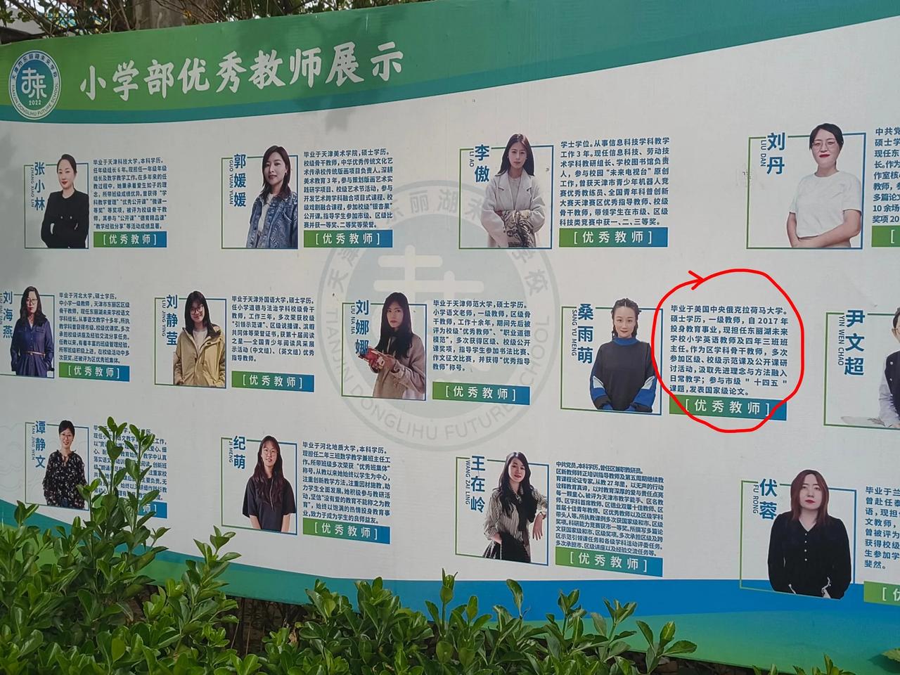 现在小学老师的师资都要求这么高了。 这是我在天津东丽明未来学校门口看到的教师展示牌。这里老师基本上都是师范专业硕士学历,甚至有海归,留美学成归来的老师。 我记得幼师毕业教幼儿园,中师毕业教小学,师专师大毕业教初、高中,师范专业的硕士、博士毕业教大学,海归算高端人才了。 离开教育系统不到廿十年,自己彻底落伍了。