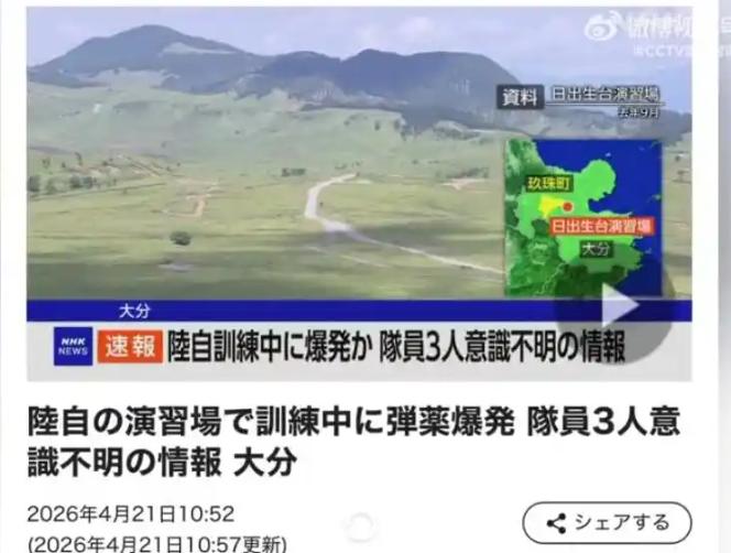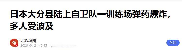 突发炮管爆炸!日本多名自卫队员倒下,至少2人死亡,右翼正在把日本带向深渊! 事情发生在21号上午,具体时间是8点40分左右,地点在日本大分县的陆上自卫队“日出生台演习场”。 这个演习场可不一般,占地大约4900公顷,是日本陆上自卫队在西日本规模最大的演习场,平时不光自卫队在这里训练,驻日美军海军陆战队也会来这里进行实弹射击训练。 当时,日本陆上自卫队的西部方面战车队,正在这里进行坦克射击训练,本来是一场常规的训练,没想到突然出了意外。 一枚炮弹被装填入坦克炮膛之后,还没来得及发射,就发生了异常爆炸,一声巨响之后,训练场上瞬间弥漫起烟尘和金属碎片。 爆炸发生得太突然,现场的自卫队队员根本来不及反应,好几名队员当场就倒了下去。旁边的队员赶紧启动应急预案,一边把受伤的队员转移到安全地带,一边紧急呼叫救护车,场面特别混乱,也特别让人揪心。 一开始,有消息说至少2人死亡,还有1人处于昏迷状态,后来经过进一步确认,这次爆炸事故最终造成了3人死亡、1人重伤。 死亡的三名都是男性,年龄分别是45岁、28岁和32岁,重伤的是一名21岁的女性,虽然意识清醒能说话,但也被紧急送进医院救治,能不能完全康复还不好说。 事故发生后,日本防卫省九州防卫局也出来说明了情况,说目前正在调查爆炸的具体原因,暂时还不能确定是炮弹本身有质量问题,还是队员操作流程出了失误,或者是其他未知因素。 他们还承诺会全力配合调查,给遇难者家属提供必要的支援,还要对全国的陆上自卫队训练场进行全面的安全隐患排查。 但这起严重的事故,根本不是偶然,而是日本自卫队这些年穷兵黩武导致的直接恶果。 这些年,日本的自卫队越来越不安分,一门心思搞军事扩张,不断增加军费预算。就在2025年,日本政府提交的防卫费预算达到了8.7万亿日元,创下了历史新高,这已经是日本防卫预算连续多年大幅增长了,从2023年开始,连续突破6万亿、7万亿、8万亿日元大关,增长速度特别快。 这么多的军费,都用在了哪里呢?大部分都用来采购先进武器装备、研发新型导弹,还有就是搞各种高强度的实战化训练。 陆上自卫队批量订购攻击型无人机,海上自卫队买新型护卫舰和潜艇,航空宇宙自卫队采购F-35战斗机,还和英国、意大利联合研发下一代隐形战斗机。 除了采购武器,日本自卫队的训练也越来越频繁,越来越实战化。就像静冈县的居民,常年被自卫队的演习困扰,有时候演习会连续好几天,从早上7点一直持续到晚上10点,还会使用迫击炮、榴弹炮等武器,无人机训练也越来越多,甚至“鱼鹰”运输机还会擅自低空飞行,特别危险,之前已经在日本多地引发过事故。 而这一切的背后,都是日本右翼势力在暗中推动,这些右翼分子,正在一步步把日本带向深渊。 日本的右翼势力,一直鼓吹“日本要强大”,不断煽动民族主义,还想方设法修改和平宪法,解禁集体自卫权,让日本自卫队可以去海外执行作战任务。 他们还不断炒作周边威胁,拿“台湾有事”当借口,试图武力介入台湾问题,近期还在距离台湾仅百余公里的与那国岛部署防空导弹部队,把军事触角伸到中国周边,破坏地区和平稳定。 这些右翼分子,根本不管日本民众的安全和意愿,也不管士兵的死活,只想着强化日本的军事力量,摆脱战后的束缚,甚至妄图复活军国主义。 他们推动的扩军备战,让自卫队的训练越来越密集,士兵长期超负荷训练,疲劳作战,弹药管理也跟不上,自然就容易出事故。 其实,日本很多民众都反对这种穷兵黩武的做法。静冈县73岁的渡边希一,已经坚持反对扩军备战五十多年了,他说自卫队的实战化训练,就像是“杀人的训练”,一旦部署导弹,日本就会变成“导弹列岛”,很可能会遭到报复。冲绳县的嘉手纳町议会,也强烈反对驻日美军的伞降训练,认为这种训练无视当地民众的安全,多次提出抗议。 这次的弹药爆炸事故,就是给日本敲了一个警钟。可右翼势力好像根本没当回事,还在继续推动扩军备战,不断增加军费、搞实战化训练,忽视安全隐患,这样下去,只会发生更多类似的悲剧,只会让更多的自卫队队员白白牺牲,让更多的日本民众陷入危险之中。 日本本来可以走和平发展的道路,和周边国家和睦相处,可右翼势力却偏偏要把日本往深渊里带。他们忘了二战的教训,无视民众的意愿,一味地搞军事扩张,最终只会自食恶果。 现在,防卫省还在调查这次爆炸的具体原因,但不管原因是什么,都改变不了一个事实:日本自卫队的穷兵黩武,已经造成了严重的人员伤亡,这不是第一次,也可能不会是最后一次。
