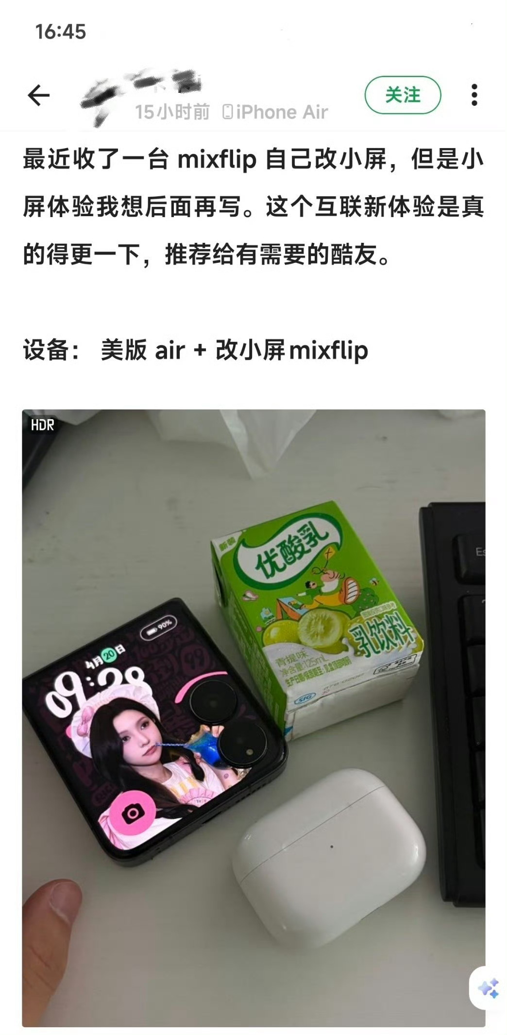 突然想到,喜欢小屏的朋友,完全可以买小折叠手机来用嘛,现在的小折叠外屏也是全功能