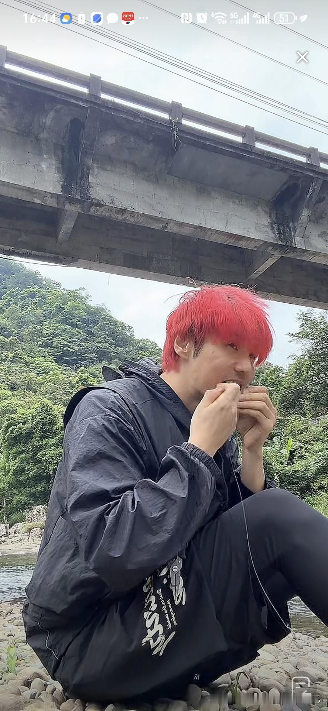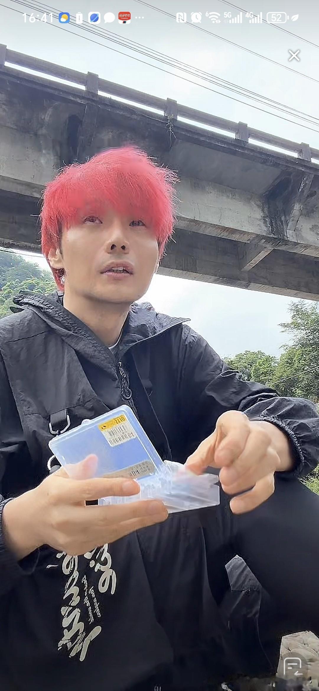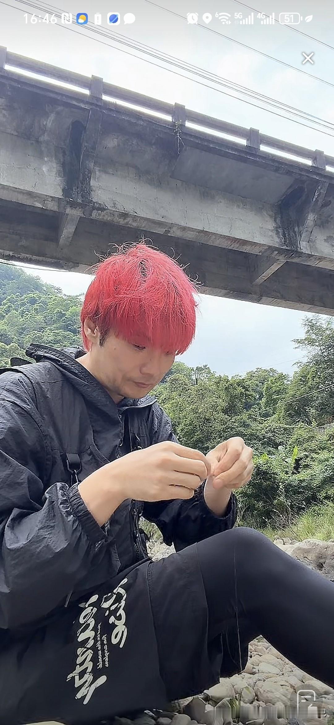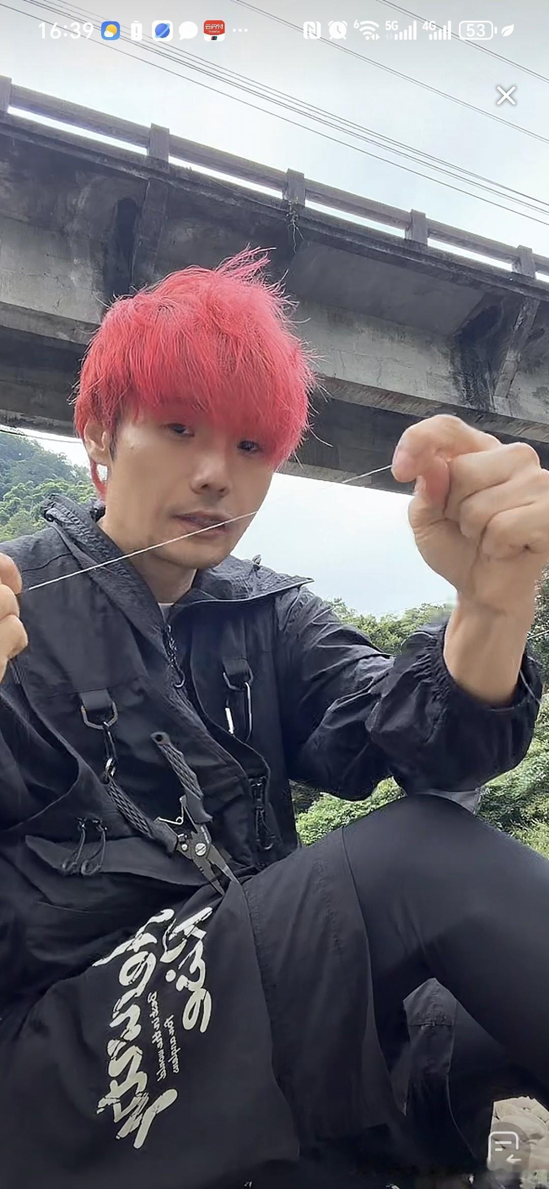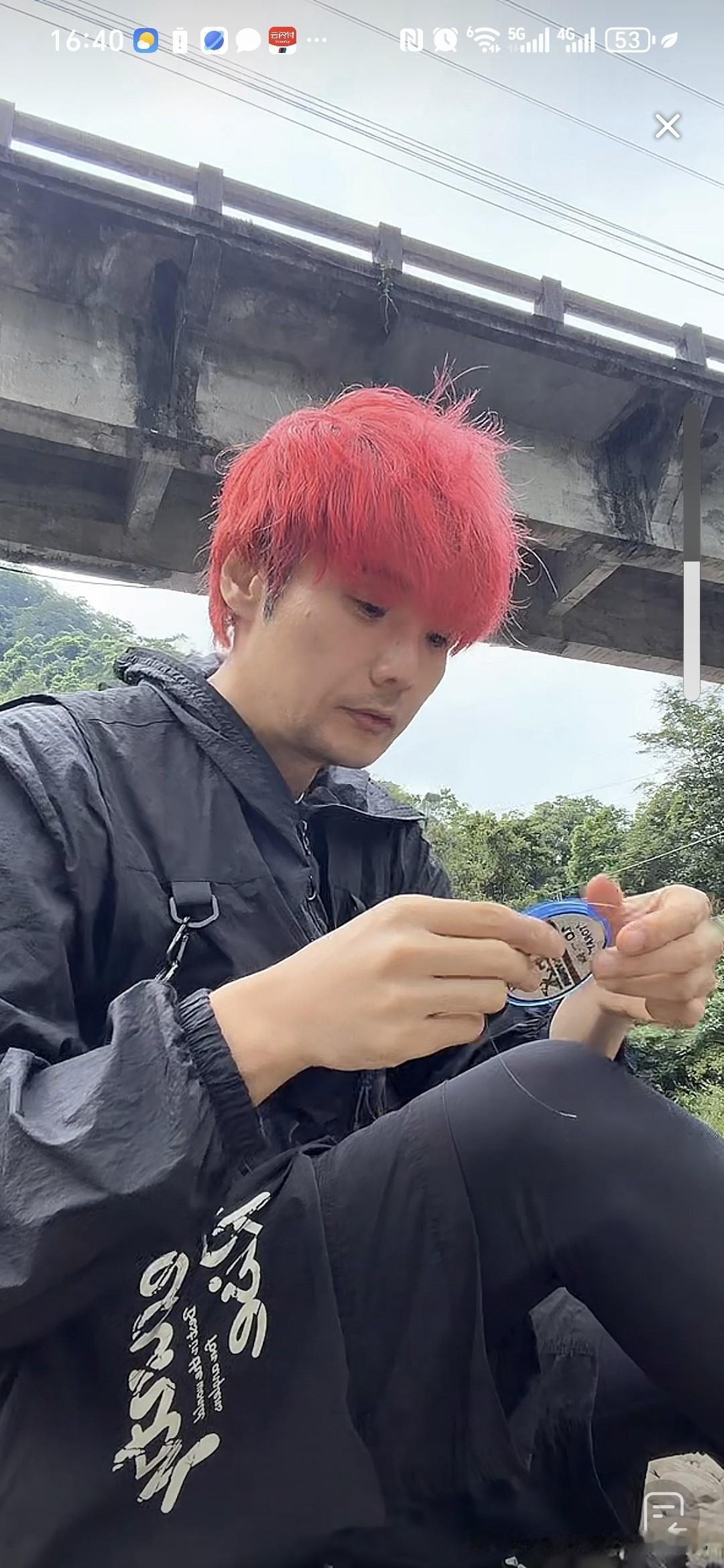刚才刷到一个钓鱼的直播,染一头红发,以为是李荣浩,结果点进去一看真的是他,直播间人气10万加,因为没有开美颜,不少网友以为是模仿他的人,李荣浩在直播间回应不是高仿的。 没想到他还有钓鱼的爱好呢,就是挂绳的速度有点慢,系了几分钟的绳子,还没有搞完。
