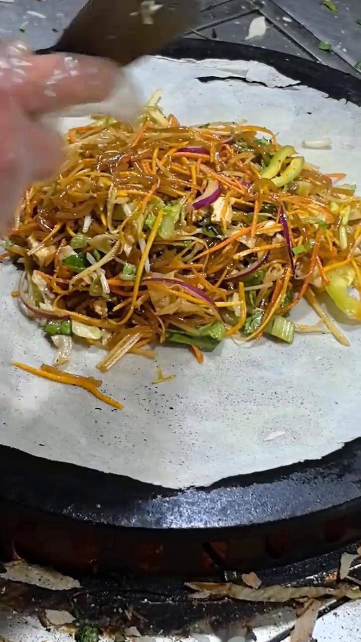 你吃煎饼我开心。 在洛阳恒大美食街遇到大煎饼,8元一个。