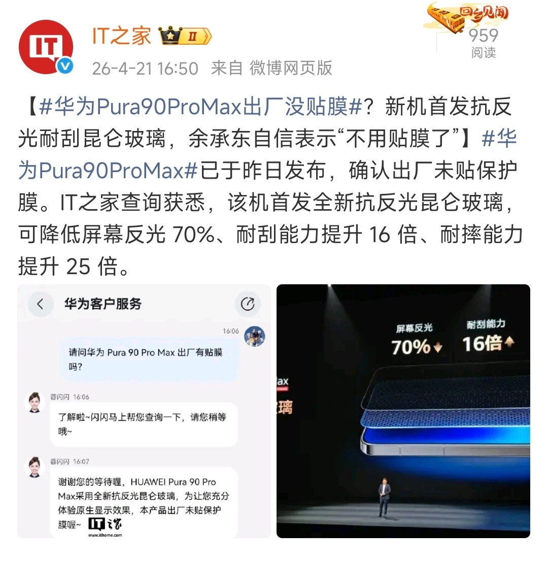 华为Pura 90 Pro Max出厂没贴膜?其实还是贴膜好,附赠一个也行