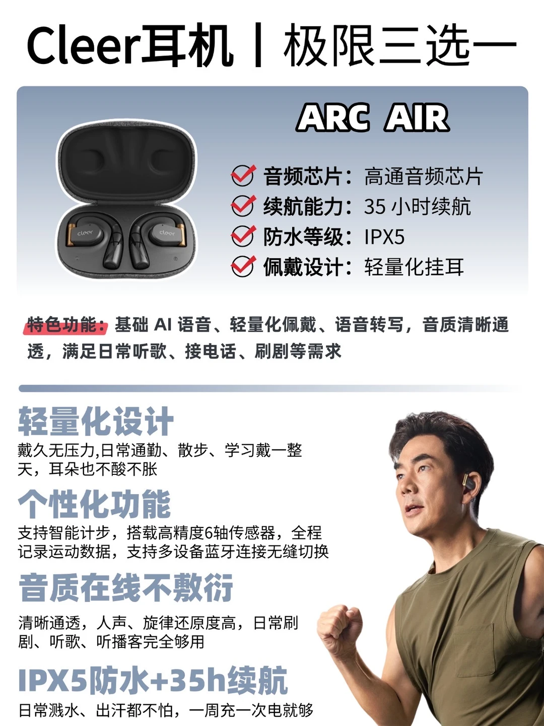 [doge]宝子们!实测完Cleer ARC三款开放式耳机,终于整理出最实在的种草分享📝 不搞虚的,不堆参数,精准匹配不同需求,闭眼冲不踩雷~