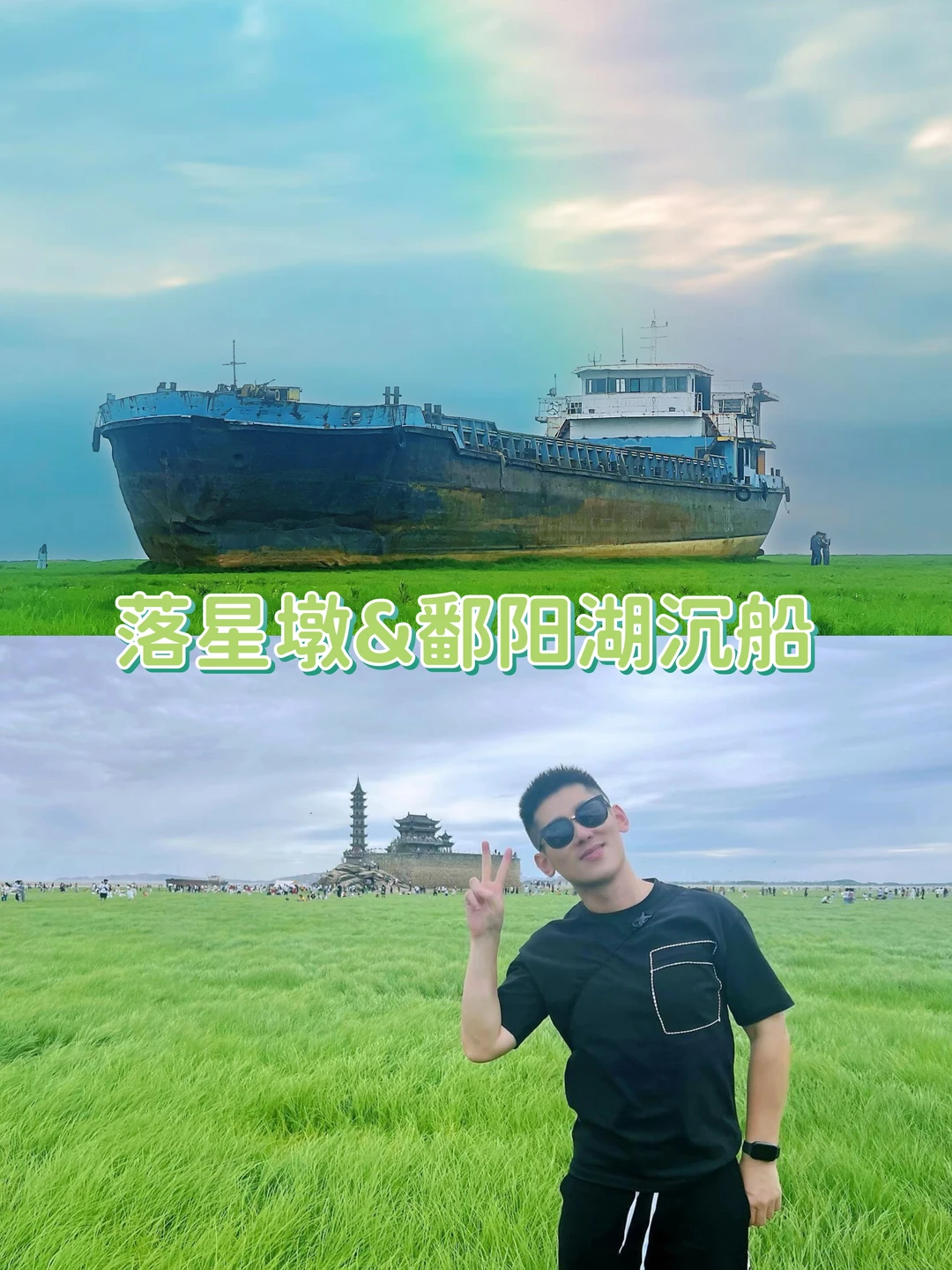 这个季节的鄱阳湖简直是仙境。落星墩美如油画,带点《盗墓笔记》的神秘感;沉船遗址在暮色中格外朋克,轻松拍出废墟大片。因为都是开阔草原,就算人多也不觉得挤。