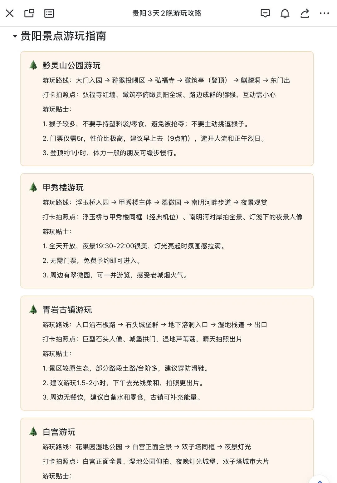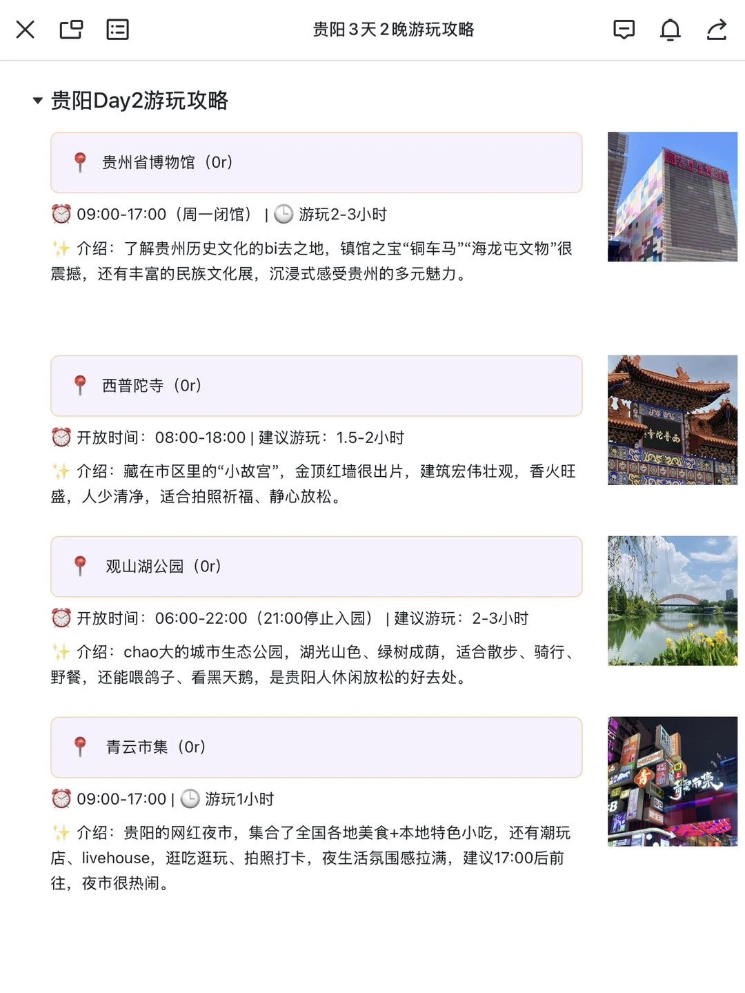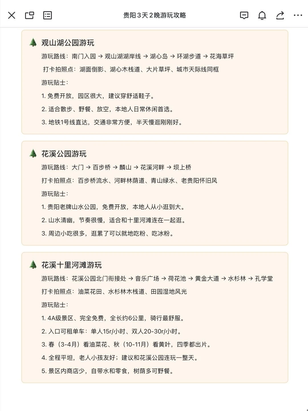 去贵阳how to旅游 可参考这篇J人花一天时间做的贵阳攻略 三天时间的行程不赶,如果计划去贵阳周边 (千户苗寨/荔波大小七孔)需要额外留出时间[派对R] 五一计划去贵阳的姐妹🉑参考 行程路线仅供参考 欢迎大家友好讨论[派对R][派对R][派对R]