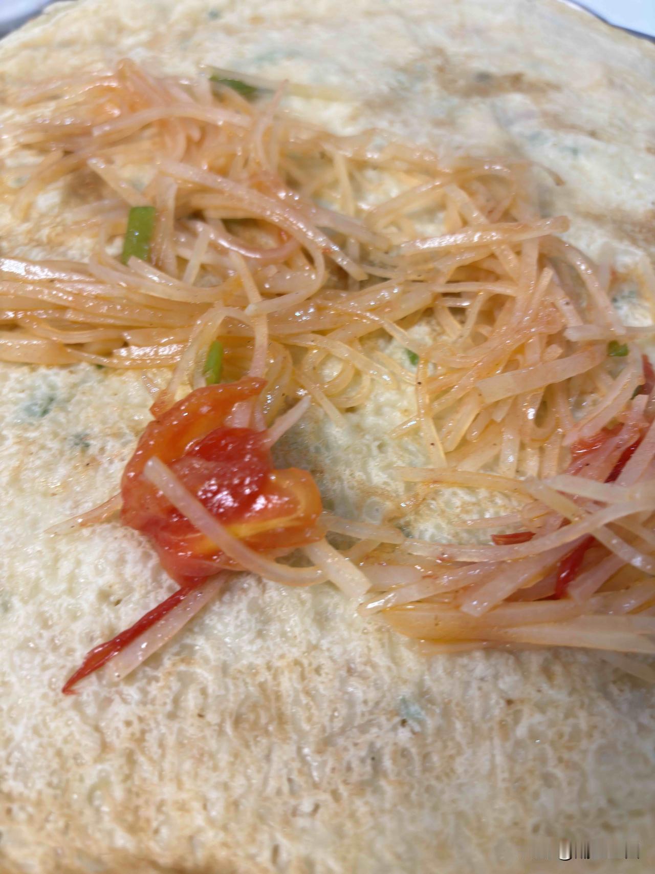 西安这边,发现大家吃煎饼,都爱配这个土豆丝,外地的,不知道吃煎饼都配的什么菜呢?可以分享一下。