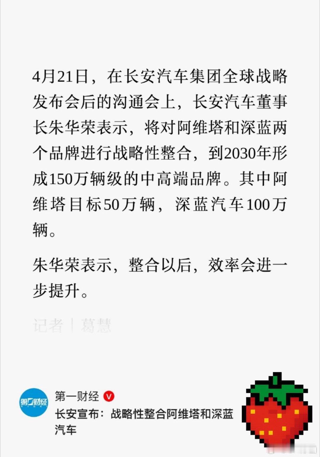 没想到这事关注度这么高,很多车友群都在发。但是我觉得这事对阿维塔来说不算是好消息,这么多年的高端化努力,突然说要和集团的平价品牌整合了。希望只是研发、制造资源上的整合,渠道和传播能保持独立,参考一汽大众和一汽奥迪的关系,不然之前的努力真的白费了。阿维塔与深蓝汽车将整合
