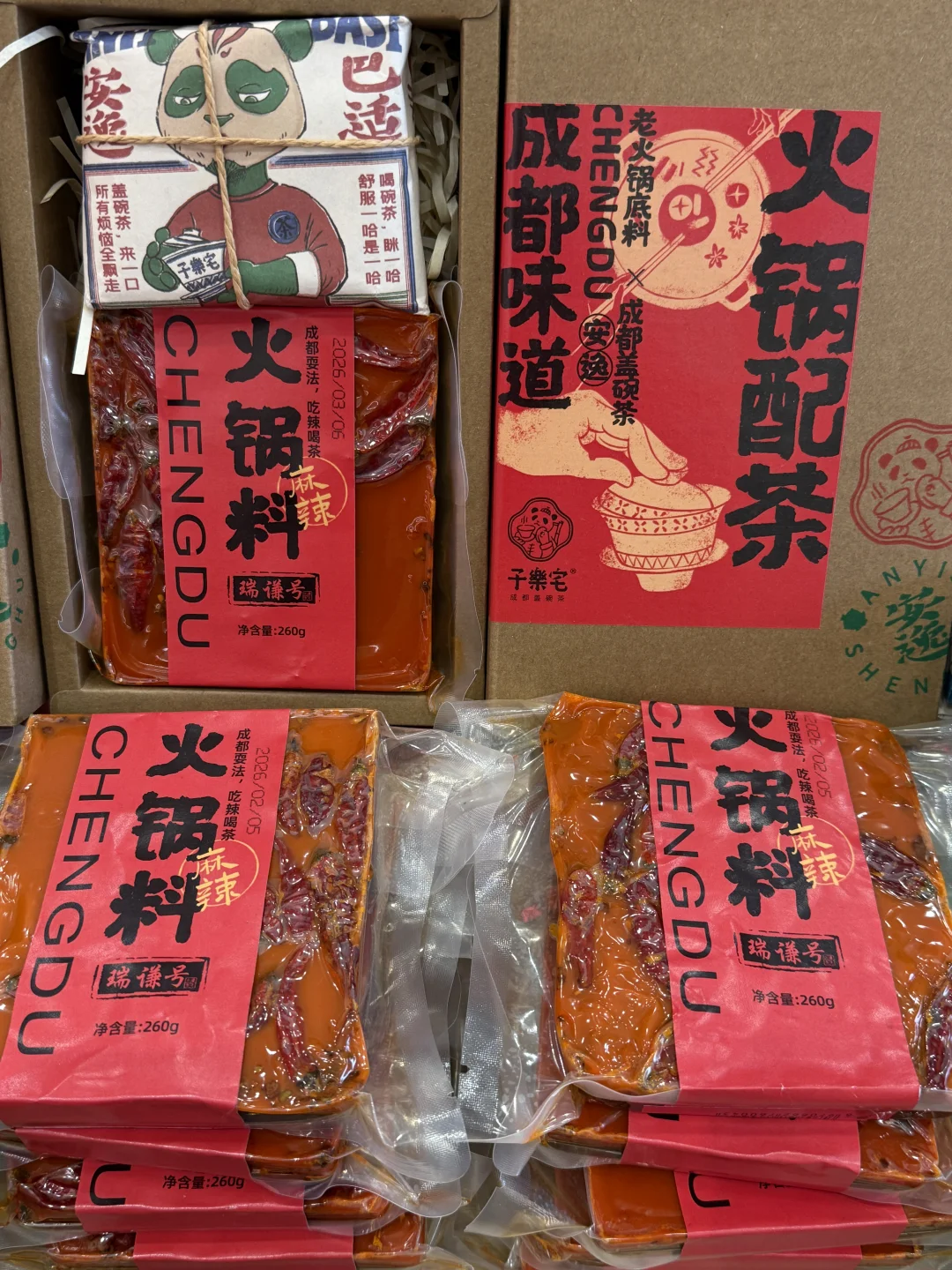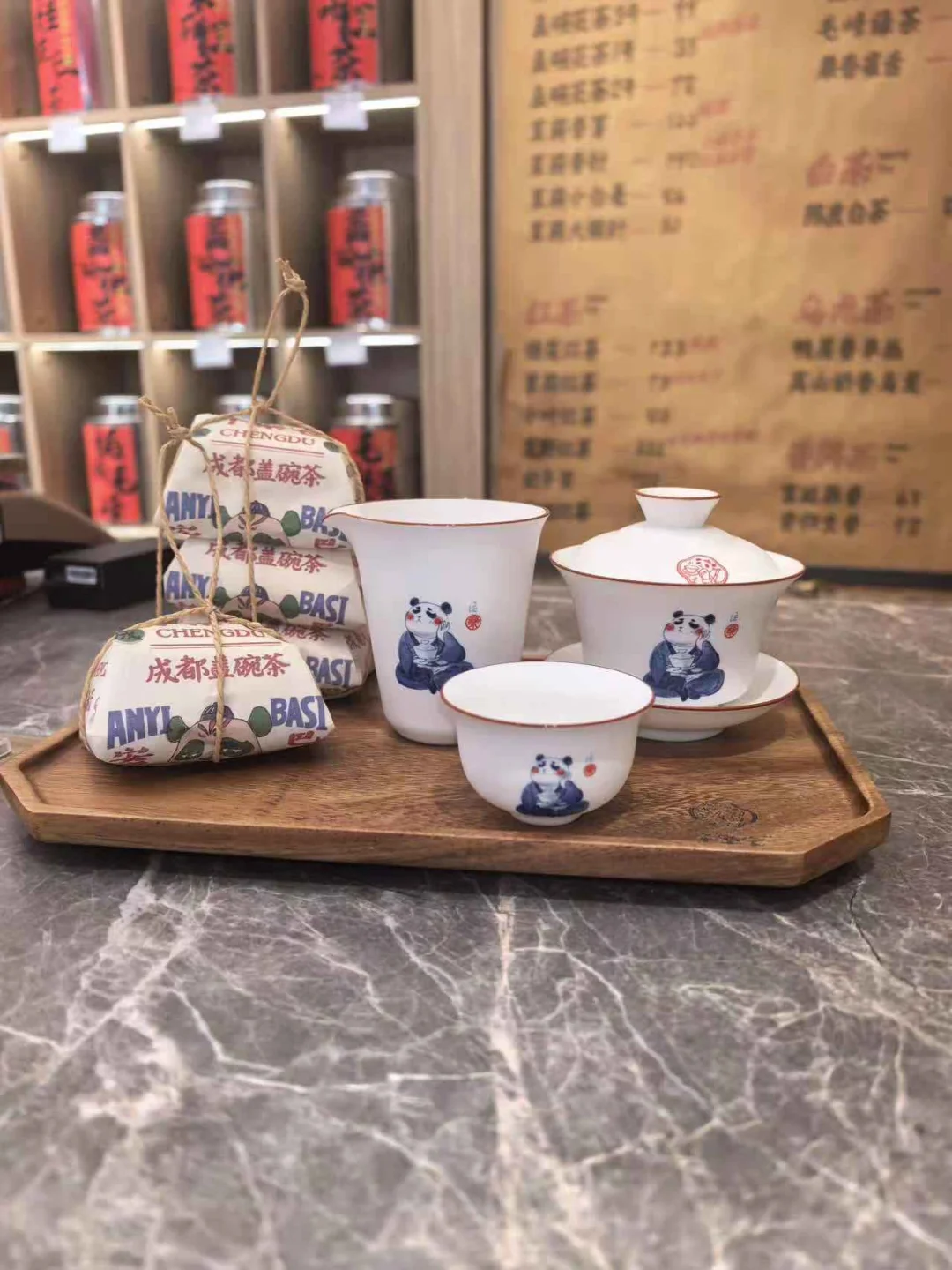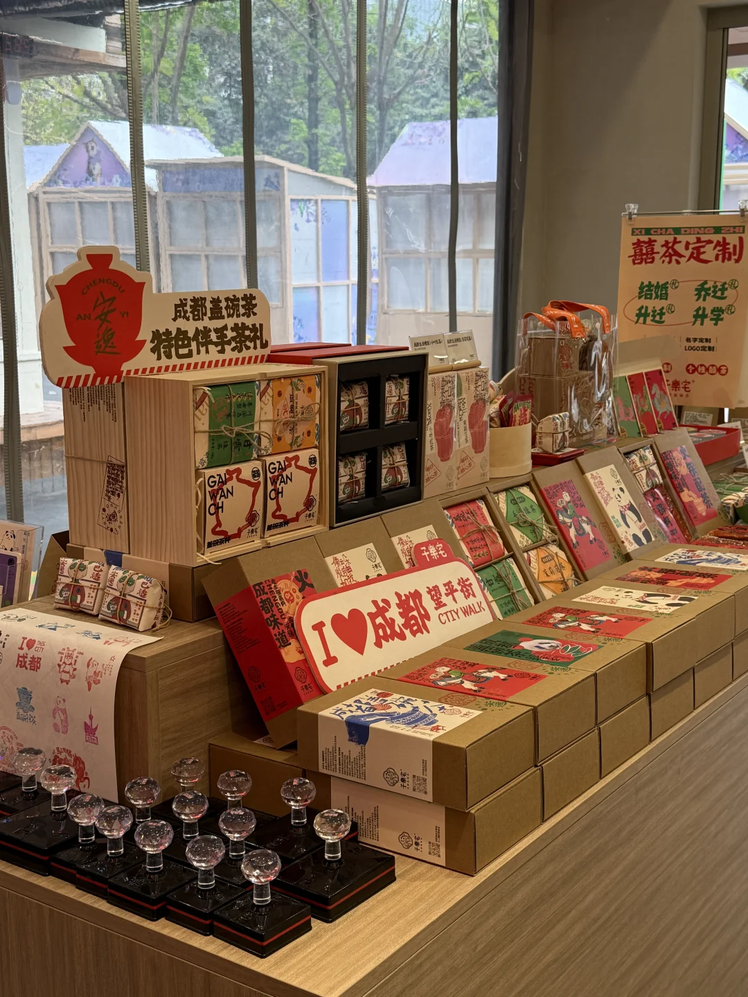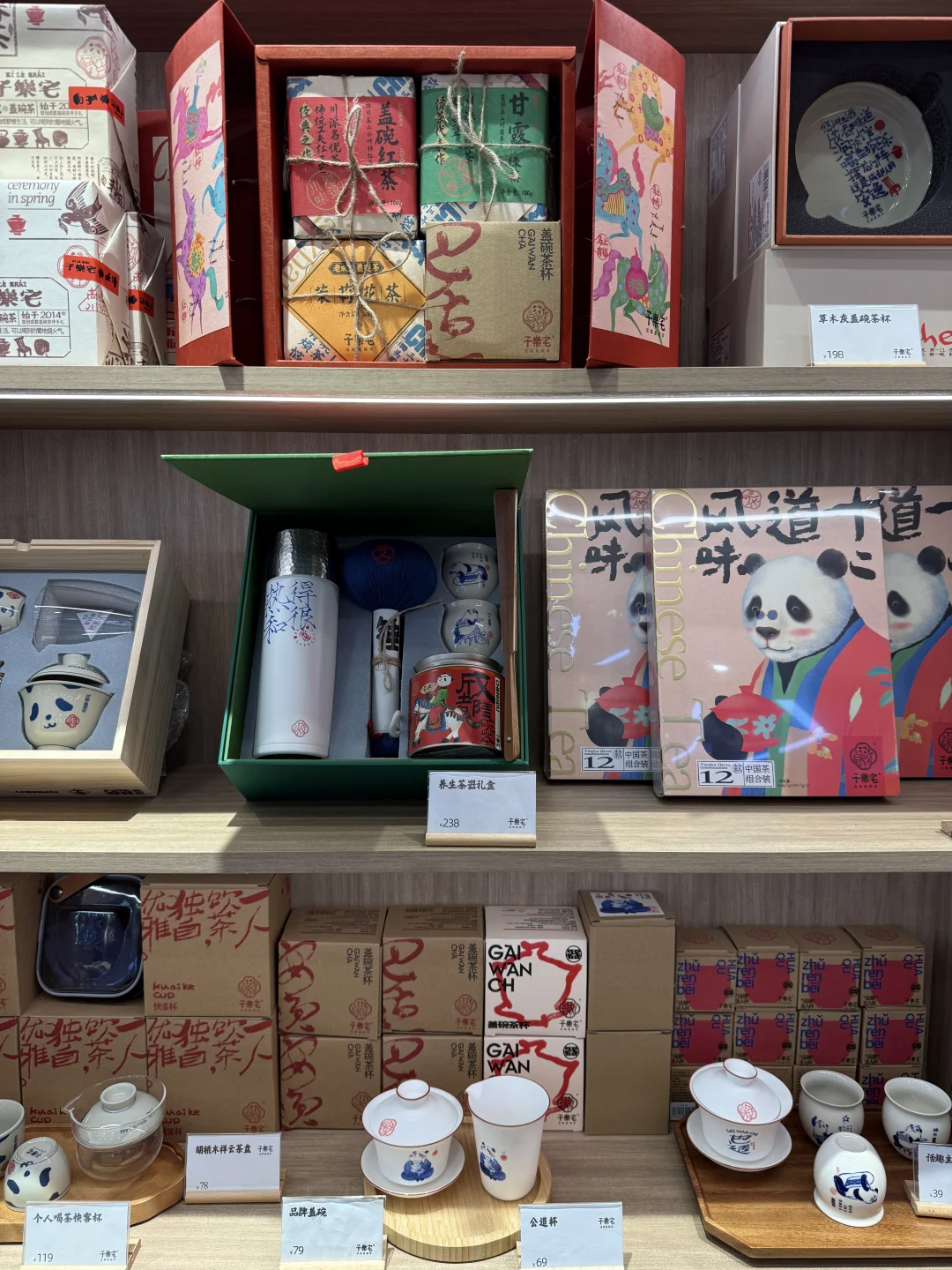 有吃的,有玩的,有玩儿的!还有超复古的盖碗茶伴手礼‼️现称现包的茶叶,小小的一包,非常有特色,是其他家都没有的特色搭配喔😉就在望平街巷子里👀店里还有超多熊猫周边,几十就能拿下😉