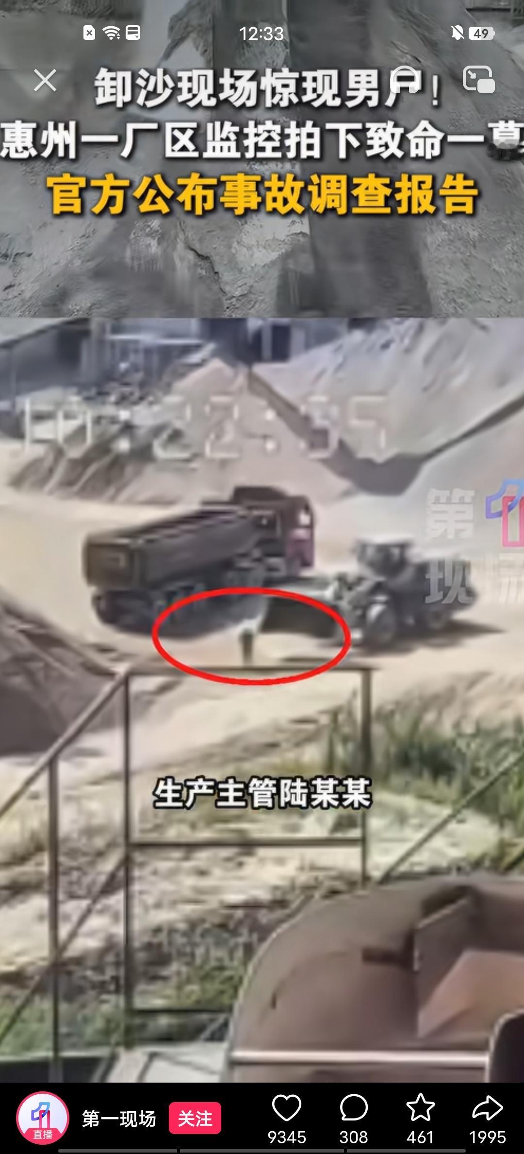 昨天惠州有个事儿在网上传疯了!一车沙从惠州拉到深圳,工人卸货时,沙子哗啦啦往下流,结果沙堆里竟然掉出一个人来!工人吓得腿都软了,当场报警。警察和法医来了确认人已经不行了,还是建材厂的生产主管呢!这事儿上了快手都一百多万播放量了。 当沙子如瀑般倾泻而下的刹那,深圳工地之上,那卸货工人顿感双腿发软,仿佛被无形的恐惧攫住,呆立当场。 不是因为累,是因为沙堆里滑出了一双脚。 2025年10月11日上午10时44分,在惠州惠东县吉隆镇的吉胜建材厂内,一台装载机有条不紊地进行铲沙装车作业,现场呈现出一派热火朝天的忙碌景象。生产主管陆某某自一辆装沙车后方现身,未作丝毫停顿,径直踏入铲车作业的视线盲区。 司机黎某某眼前一片混沌,仿若被无形的屏障遮蔽了视线,他竟是什么都未曾瞧见,周遭的一切于他而言,皆隐匿于虚无之中。铲斗翻转,人和沙子一起被倒进了货车。 在整个进程之中,竟无一人有所察觉。一切悄然进行,仿若被一层无形的纱幕遮掩,未在任何人的感知里泛起一丝涟漪。货车从惠州开到深圳,一路畅通。直到深圳工地卸货,沙子哗啦啦往下倒,陆某某的身体才跟着露了出来——只剩双脚和裤腿。 当医护人员匆匆赶至现场,却已回天乏术。生命的消逝如流星划过暗夜,徒留无尽的遗憾与怅惘,斯人已逝,空余悲戚。顷刻间,大量沙子如汹涌浪潮般将其掩埋,短短几分钟,生命便在窒息中消逝,残酷而决绝,令人扼腕叹息。 这事儿被拍成视频传上快手,半天播放量破百万。评论区炸了,有人猜是抛尸案,有人说太离奇。直到官方调查报告出来,真相才揭开——这不是凶案,是一场彻头彻尾的安全生产事故。 极具讽刺意味的是,逝去之人陆某某,竟正是该厂的安全管理负责人。如此反差,令人唏嘘不已。 他在这家厂干了快八年,40岁出头,家里上有老下有小,是顶梁柱。他的工作职责里明确写着"现场作业安全管理",可他自己却违规闯进了装载机作业区。 为什么一个管安全的人会死在自己最熟悉的区域? 调查组给出的答案着实令人痛心:此厂竟全然没有针对装载机的专项操作规定。简单的事实,却如重锤般敲醒了人们对规范操作的忽视。员工安全培训就是开会念稿子、签字走流程,现场连铲车作业区的警示线都没有,更别提盲区防护措施。 吉胜公司于2023年6月正式成立,现有员工21人。公司专注于建筑用石料的加工与销售业务,凭借专业服务致力于在行业中崭露头角。成立快两年了,连关键设备的操作规定都拿不出来。 企业主要负责人韦某某,面对制度不健全、培训不到位等问题,采取了漠视之态,置若罔闻,未展现出应有的责任担当,着实令人失望。 安全管理人员未能恪尽职守,履行检查之责。他们本应严谨细致排查隐患,却有所懈怠,未能为安全保障筑牢防线,这无疑留下了潜在的安全风险。这家企业从根上就没把安全当回事。 更为深刻的问题潜藏于监管层面。此层面犹如复杂棋局,诸多隐忧待解,其背后牵扯的系统性难题,亟待重视与破解。 调查组指出,吉隆镇政府对辖区内小型砂石企业的日常监管存在"宽松软"现象。安全检查不够深入、不够有针对性,导致企业长期存在的隐患一直没被发现和整改。 21人的小厂,就这样在监管雷达下隐身了。 追责结果已揭晓:装载机司机黎某某遭批评教育并受处分;企业负责人与安全管理人员将面临行政处罚;吉胜公司被认定未切实履行安全生产主体责任。吉隆镇政府被责令约谈相关企业,针对工作中存在的问题,需向县政府作出深刻检讨,以反思不足、加强整改,展现积极改进的态度。 可这些处罚,能换回一条命吗? 陆某某的家属接到消息后直接崩溃了。好好上班的人,以这种方式离世,谁能接受? 100万次播放量背后,是100万次屏幕上的拇指滑动。人们看完视频,感叹几句"太离奇了",然后继续刷下一条。 可对陆某某的家人来说,这不是一条可以刷过去的新闻。这是一个家庭的天塌了。 沙子还在继续被运往各个工地,建筑还在继续拔地而起。但有些生命,已经永远留在了某个沙堆里。 下一车沙子里,会不会还藏着我们看不见的隐患? 信源:百度百科