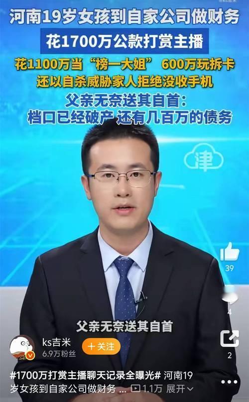 真是痛心疾首!离谱至极!20岁女孩在父亲公司做财务,一年多狂霍1700万公款,全用来打赏主播、疯买盲盒,败光父亲半生家业,最终亲爹绝望到亲自送她自首!这不是狗血剧情,是河南郑州真实发生的悲剧,看完瞬间破防! 综合上游新闻等媒体报道,4月20日,郑州50岁朱先生,带着20岁女儿小朱主动到公安局投案。朱先生经营冷链牛肉商贸公司,让中专肄业的女儿负责公司财务。 2024年7月至2025年11月,刚满18岁的小朱,利用公司财务漏洞,私自挪用公款消费。她单日狂刷数十笔,单笔花销四五万,累计掏空公司1700万元!这些钱全用来打赏主播、疯买盲盒,被主播甜言蜜语刻意诱导,一步步深陷泥潭! 早在事发初期,朱先生已发现几十万缺口,女儿认错后,他心软纵容,没做任何整改。直到年底备货,才发现公司账户一分不剩,直接濒临破产!可小朱至今毫无悔意,不仅不戒直播,还反对追回打赏款! 朱先生彻底绝望,挣扎五个月,亲手送女儿伏法,只求法律帮她矫正!而涉事MCN机构回避采访,平台仅表示会配合调查,退款毫无进展。 这场悲剧,藏着三个扎心真相,值得所有人警醒! 首先,无底线溺爱,是毁掉孩子的元凶。朱先生忙于生意,缺失家庭教育,对女儿一味纵容,发现问题不及时止损,反而继续放任。 小朱在现实中缺乏正确引导,沉迷直播间的虚假追捧,把挥霍公款当成获取存在感的方式,最终在欲望里彻底迷失。朱先生无底线的纵容,终究害了女儿,也毁了自己半生打拼的家业。 其次,家族企业无制度,是致命的漏洞。朱先生公司财务混乱,个人账户与公司资金混用,把核心财务岗位交给毫无专业能力、缺乏自制力的女儿,全程没有监督、没有核查。 职场没有亲情特权,财务重地更不能仅凭信任,没有制度约束,再大的家业也经不起挥霍。 最后,平台监管缺位,助长了非理性挥霍。小朱长达一年多高频、巨额的异常消费,平台全程没有预警、没有管控。主播刻意诱导打赏,MCN机构推卸责任,平台只顾盈利,未尽到监管义务,成为悲剧的间接推手。 这给所有家长敲响警钟:家庭教育不能缺位,规则底线不能突破,网络诱惑更要时刻警惕!溺爱毁孩子,无制度毁企业,这堂惨痛的课,所有人都该记住!希望这样的痛心疾首不再发生!
