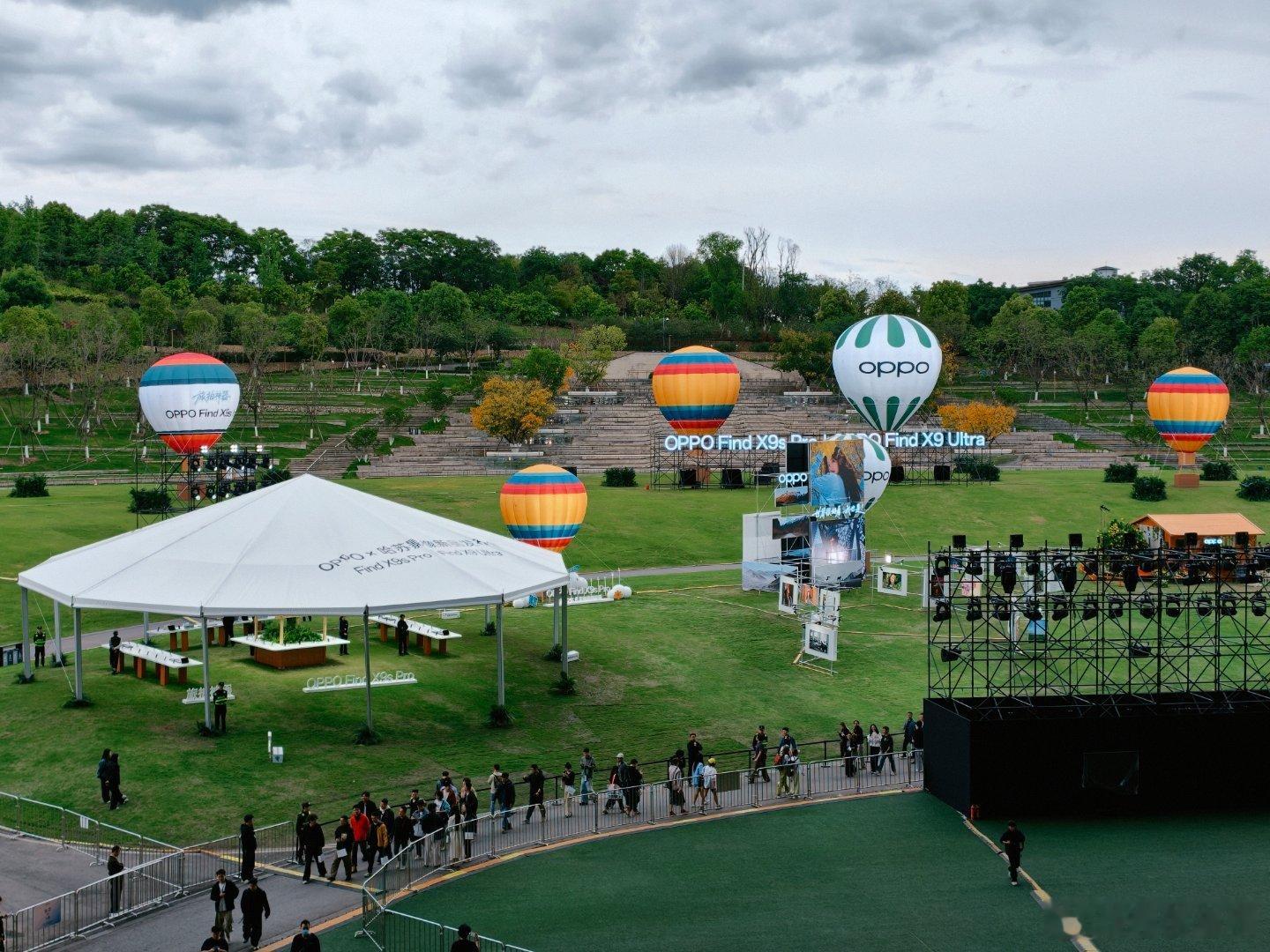 公园里的OPPO发布会即将开始,现场好热闹,很多外国友人也来了,一起见证全球手机影像再进化!OPPOFindX9Ultra专业口袋哈苏OPPO 成都·成都露天音乐公园