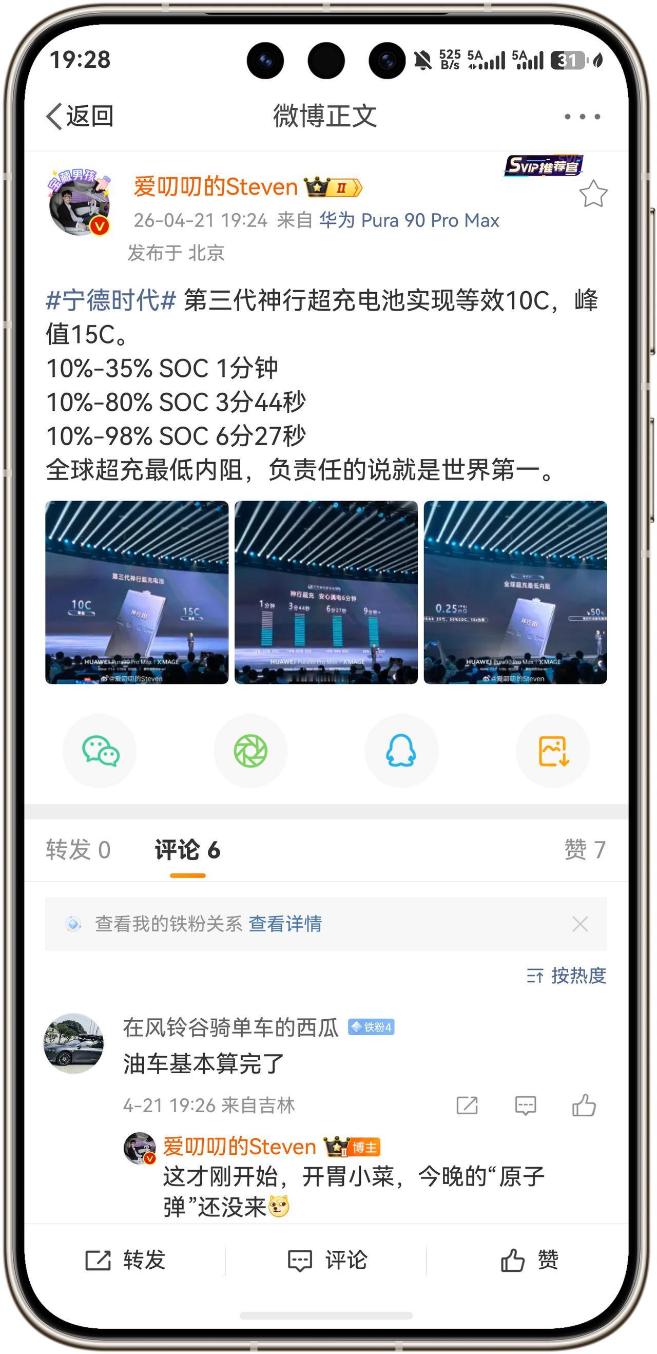 宁德时代第三代神行超充电池真的太强了!实现等效10C,峰值15C。 10%-35% SOC 1分钟 10%-80% SOC 3分44秒 10%-98% SOC 6分27秒 全球超充最低内阻,负责任的说就是世界第一!谁会首发这款电池呢?敬请期待一下吧!